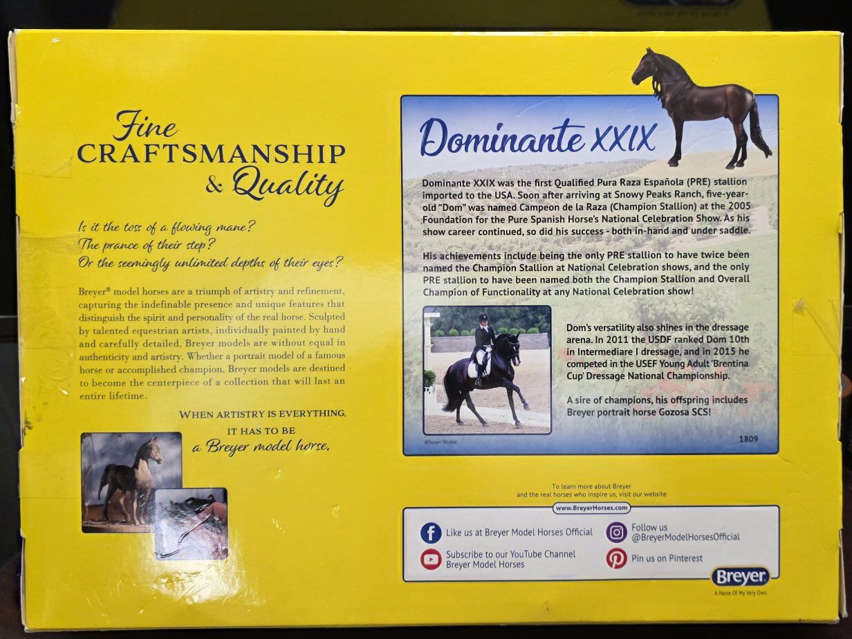 NEW This Breyer model is a 1:9 scale representation of Dominante XXIX, a famous Andalusian stallion known for his beauty and athleticism. Historical Significance: Dominante XXIX was the first qualified Pure Raza Española (PRE) Stallion imported to the USA and the only PRE stallion to have twice been named Champion Stallion at National Celebration shows. The model captures the distinctive features of the Andalusian breed, including a crested neck and noble expression. See all photos, text message is better, see my other adds, thank you.