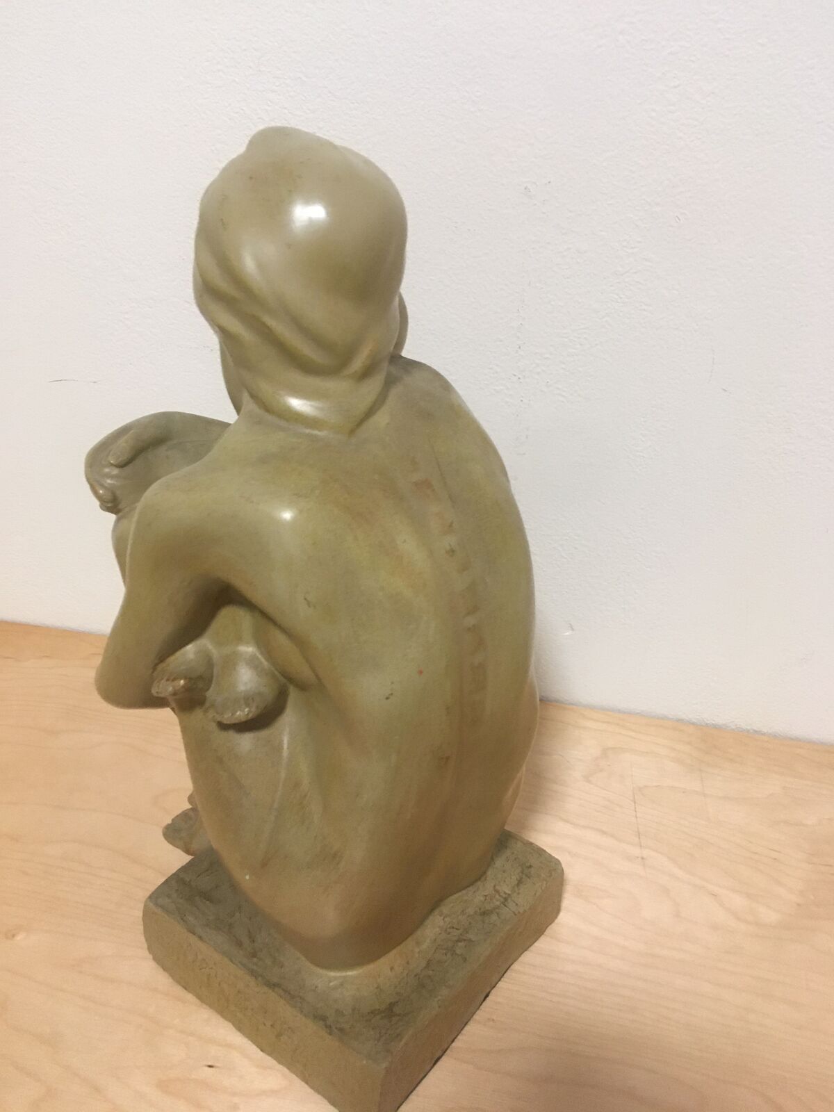 This Vintage Art Sculpture depicts a mother cradling her baby in a tender and intimate pose. The statue is made of ceramic and porcelain material, with a brown color finish that adds to its vintage look. The sculpture is medium-sized, measuring 17.50 inches in height and 10 inches in width, and is suitable for placement on a table. The sculpture is perfect for art enthusiasts who appreciate vintage and inspirational themes. It portrays the beauty of domestic and family life and captures the essence of different cultures and ethnicities. Whether you're looking to add to your art collection or searching for a unique gift, this Vintage Art Sculpture is sure to be a timeless piece that will spark curiosity and admiration.