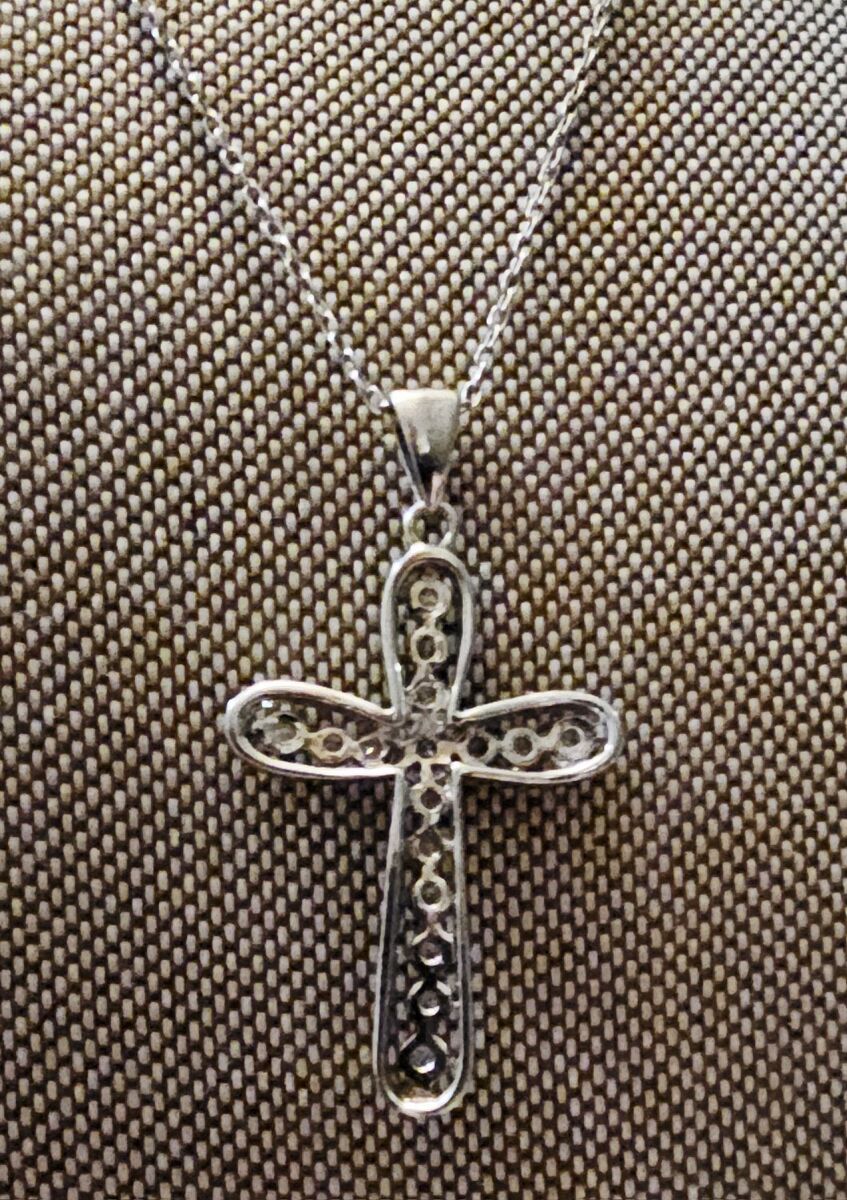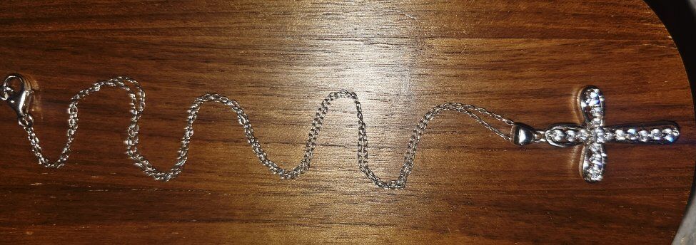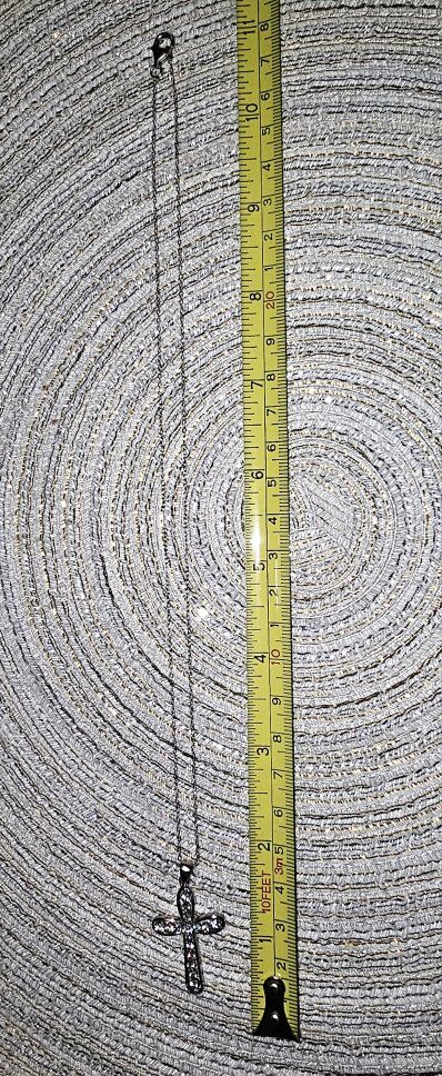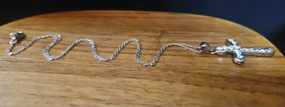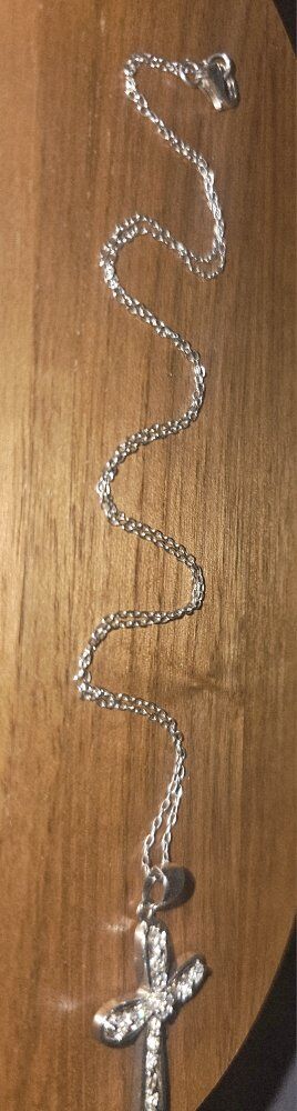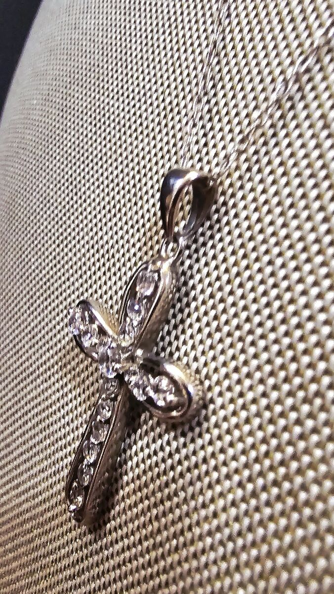 Super blingy STERLING SILVER Rhinestone CROSS necklace. Cross measures 1.25" and has 16 VERY SHINY faceted Rhinestones. Has an open back to allow the light to show through. Very smooth with no snags.