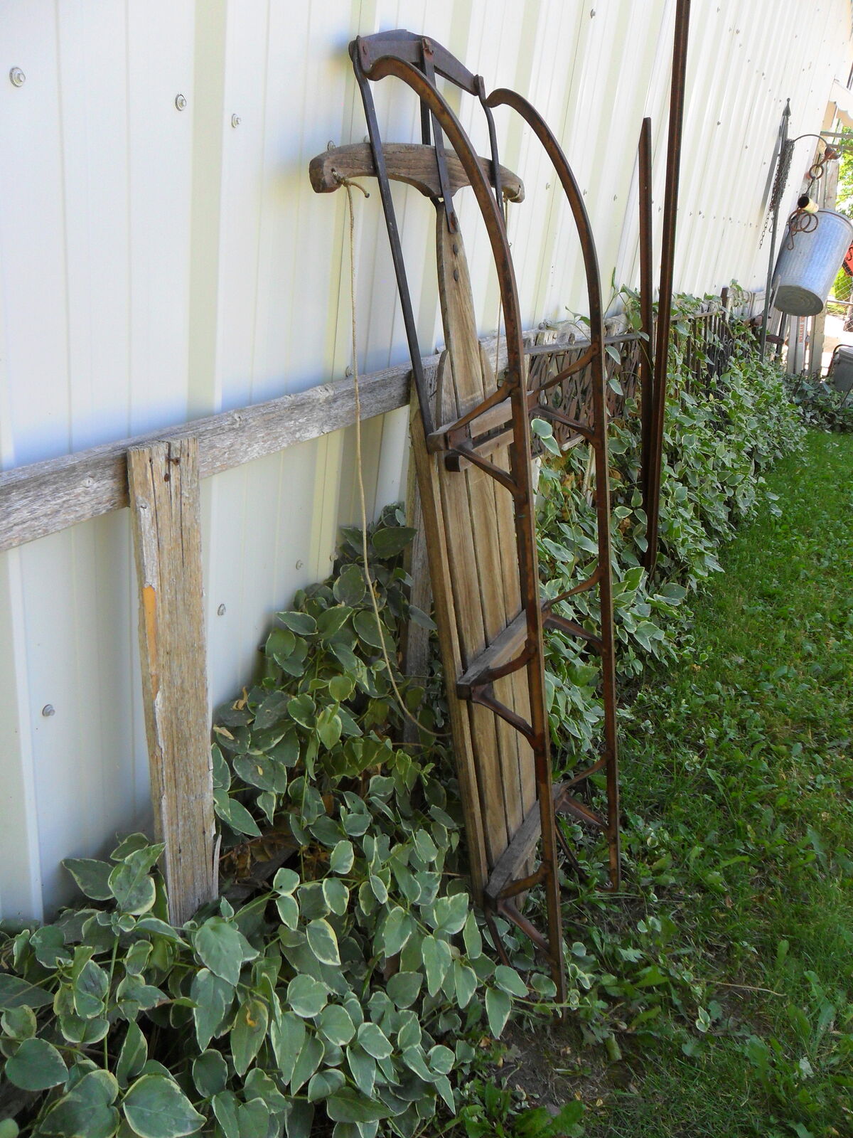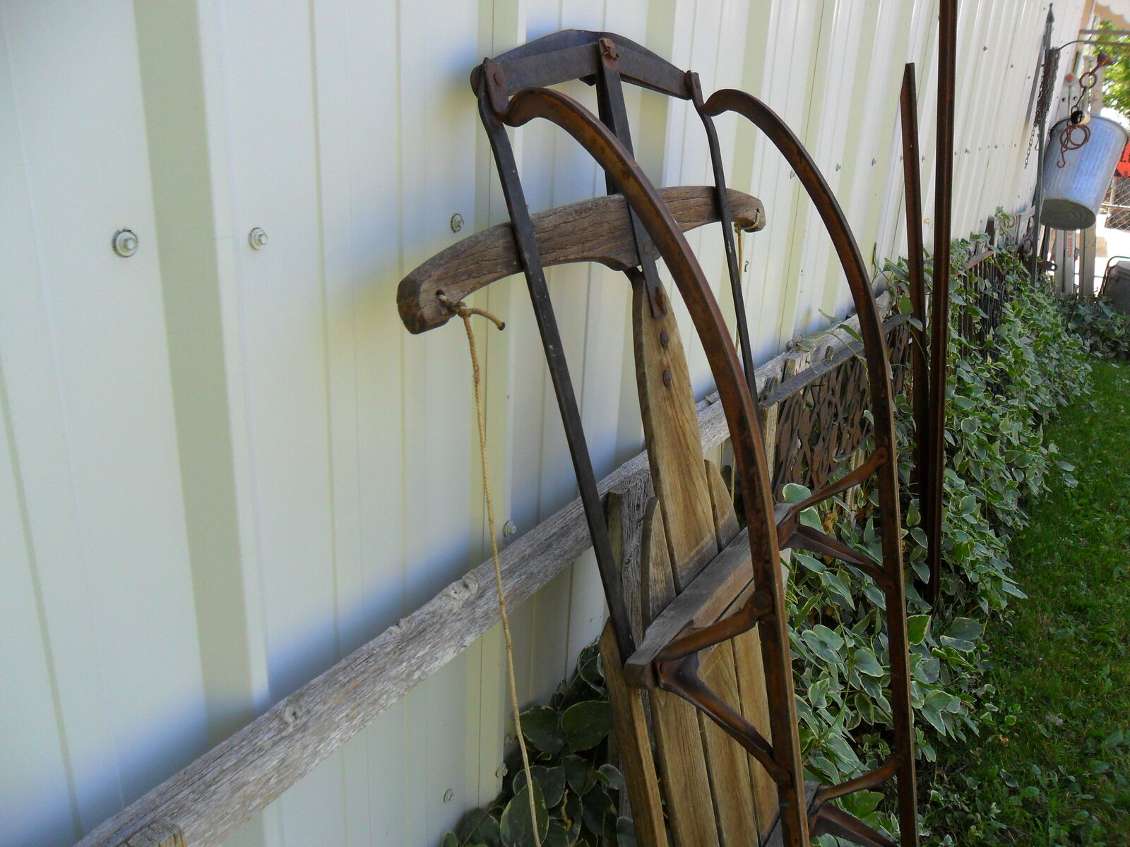 Good old sled with solid wood and great patina . It could still be used or will make a fantastic decor piece . Thanks for looking .