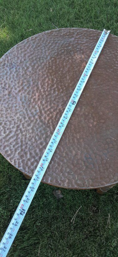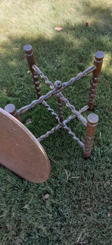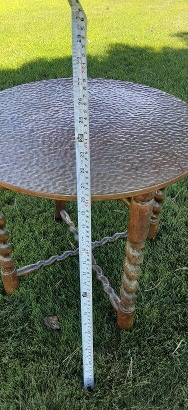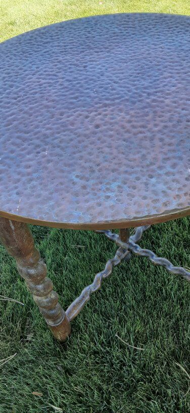 Antique barley twist folding table with pounded copper top. This table is really cool and unique. See photos for measurements. Thanks for looking..