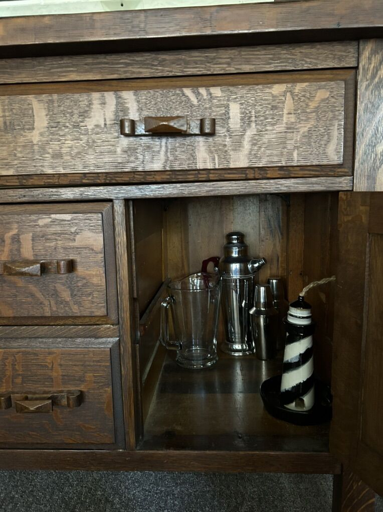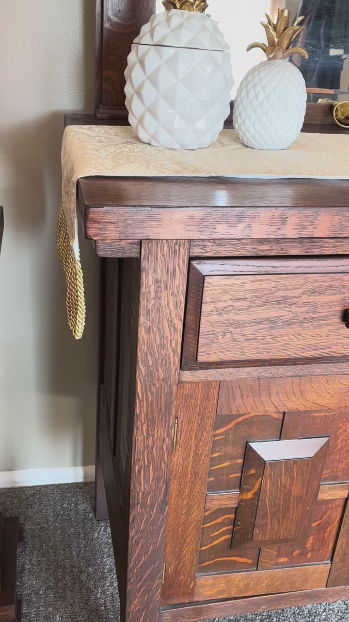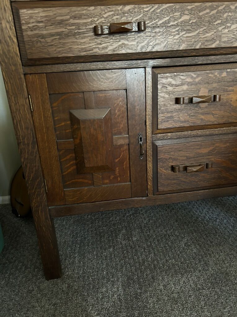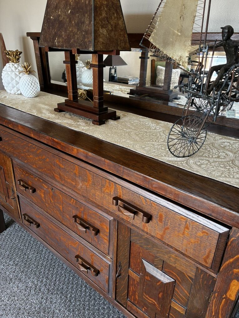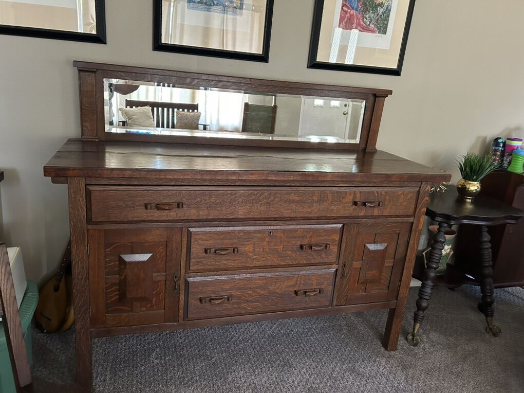 PayPalBeautiful large antique tiger wood buffet with mirror and lots of storage. Made in 1905 and is original from Atlanta GA. Top of the buffet is cupping due to age, not cracked and can be fixed. We are downsizing and won’t have the space. $8000. Measurement in the photos.