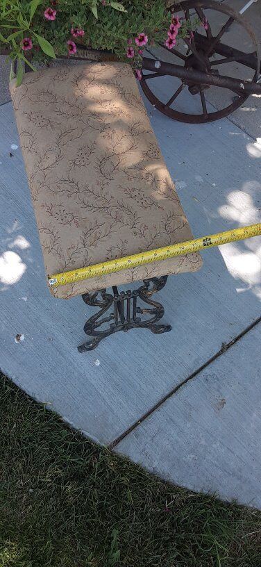 Beautiful antique vanity bench, cast iron with padded seat. See photos for measurements. Thanks for looking.