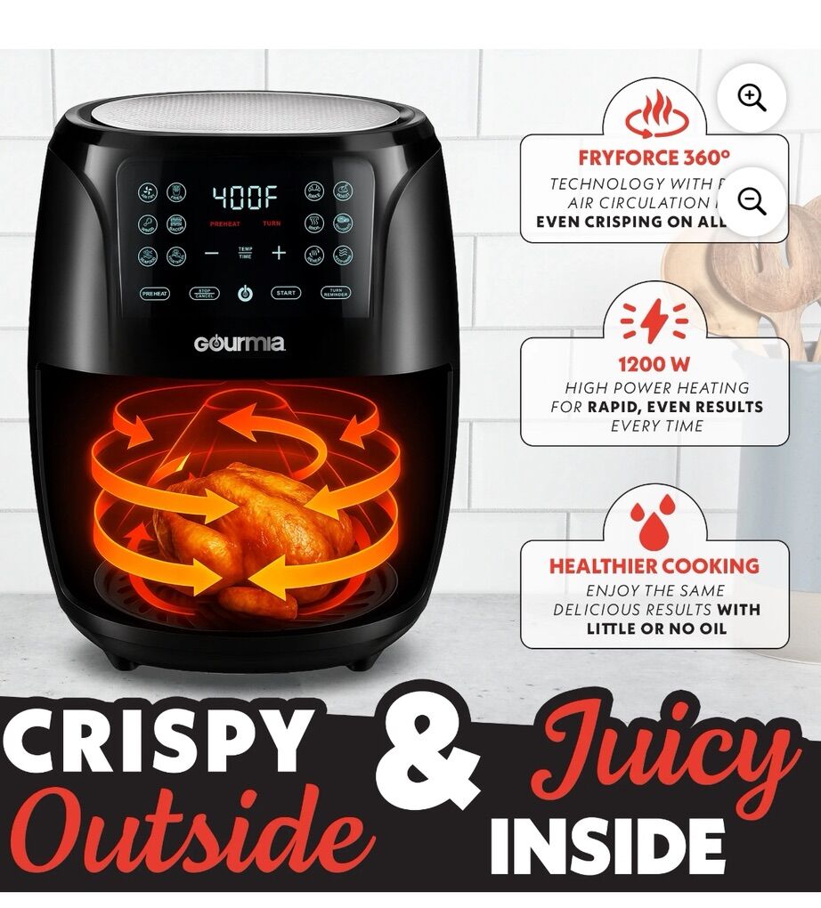 VenmoNew Gourmia 4-Qt Digital Air Fryer,Touchscreen, Compact, Dishwasher Safe, Black