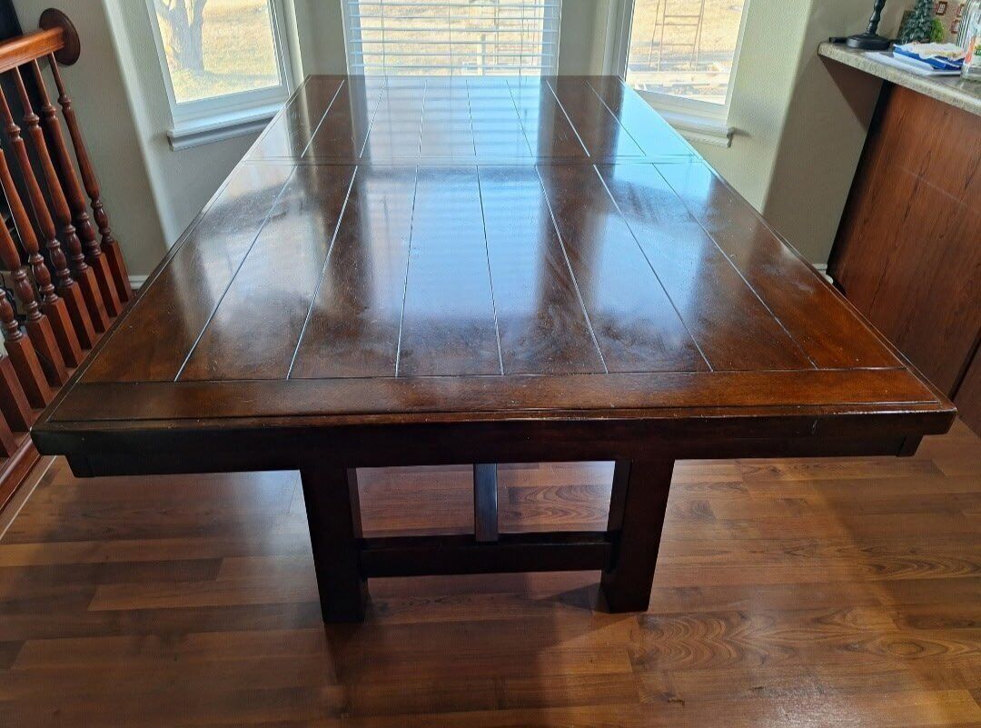 VenmoA farmhouse table adds a welcoming, rustic charm to any home. Solid wood dining table with a rich espresso finish. Features a beautiful high-quality mahogany veneer table top with decorative groves creating a cozy, timeless, modern style.