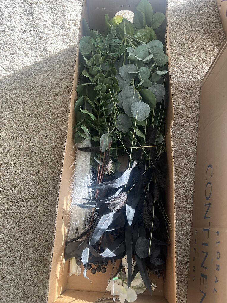 VenmoTons of floral from my daughter’s wedding. Greenery, flowers and black accents. Ficus leaves
