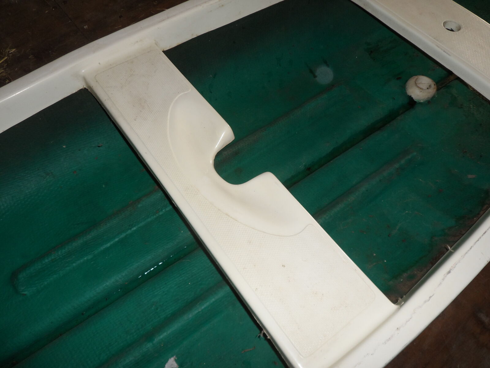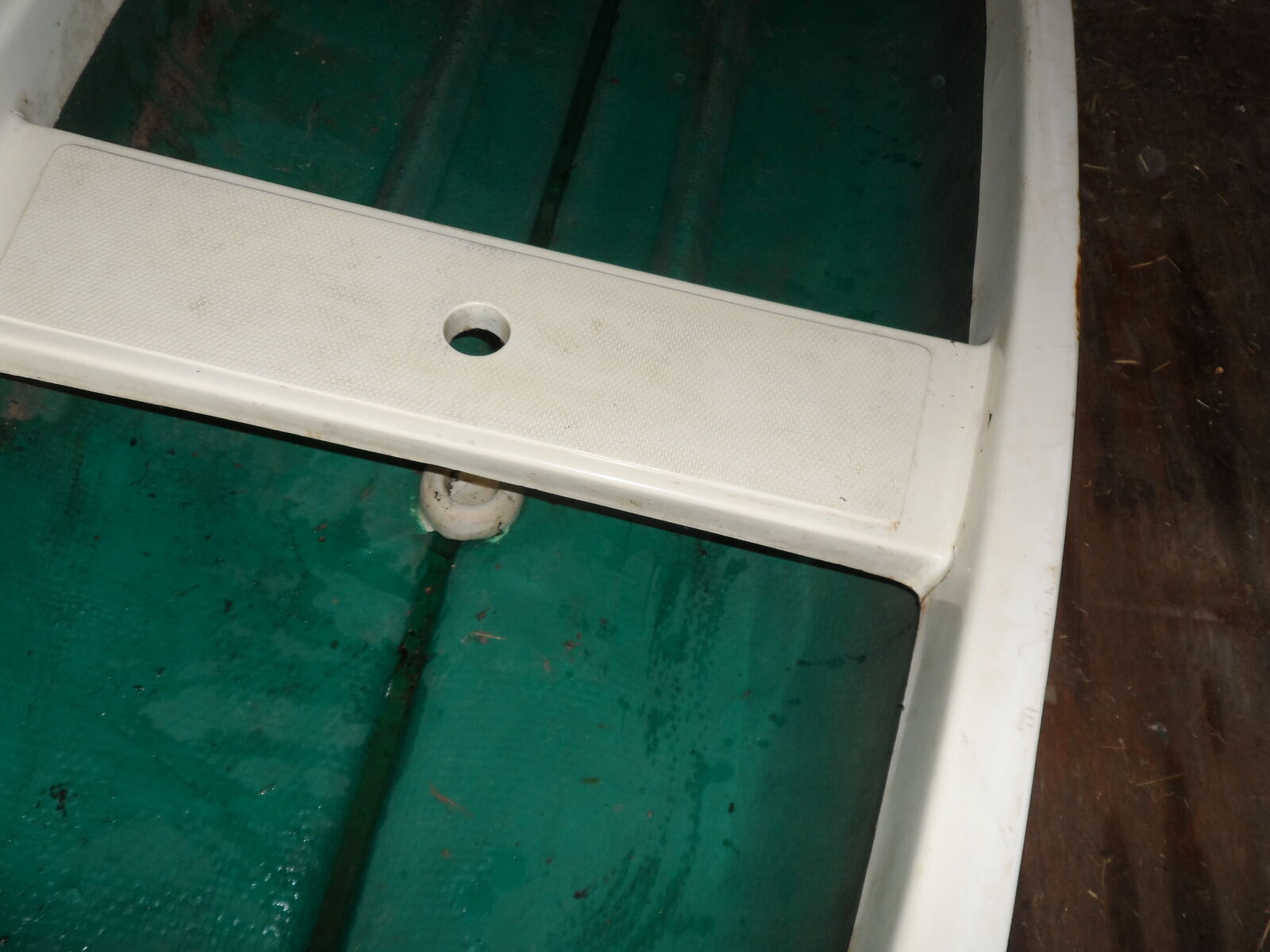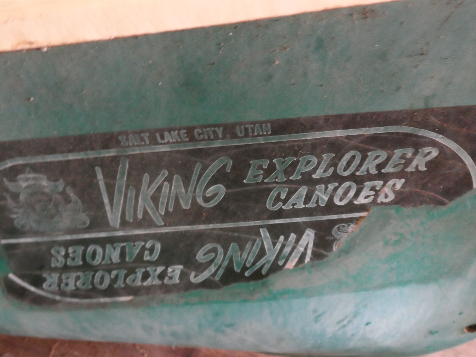 Canoe manufactured by Viking, length is 16 feet wiith a beam of 41 inches. There are 3 seats with the center one having the shoulder support for portage purposes. Beneath the front seat is a receptacle for a mast (see photo #3, note hole in the seat).