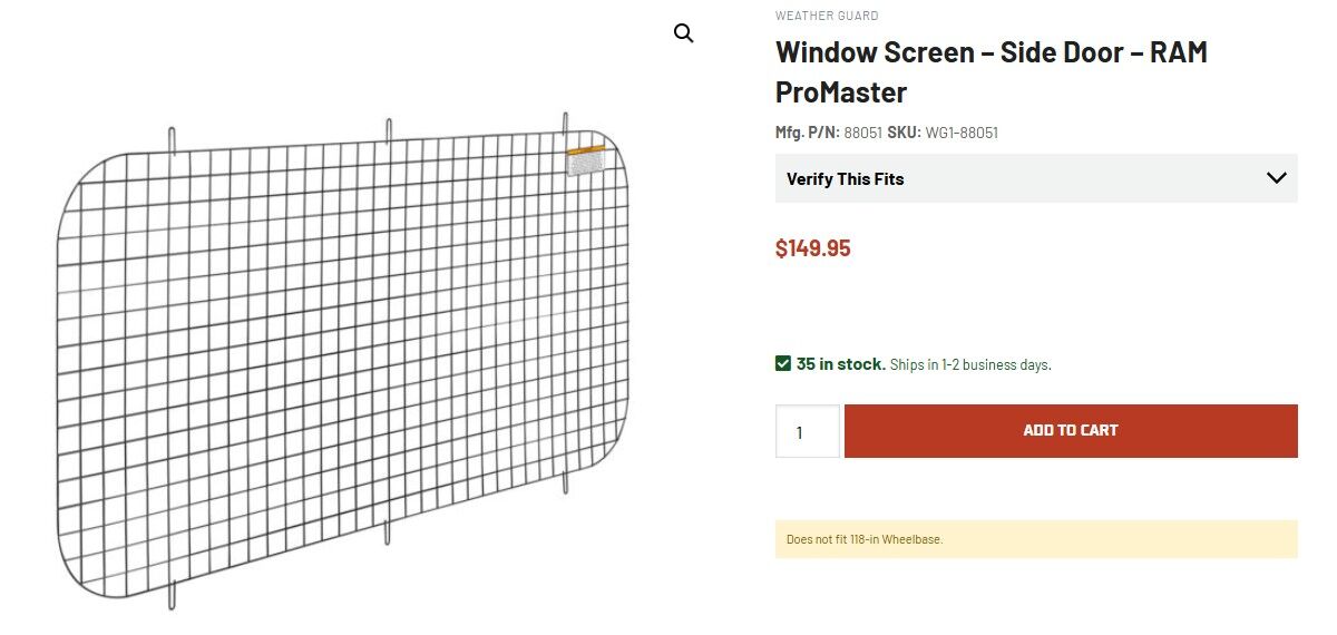 ApplePayModel 88051 Window Screen, Side Door, Full, RAM ProMaster