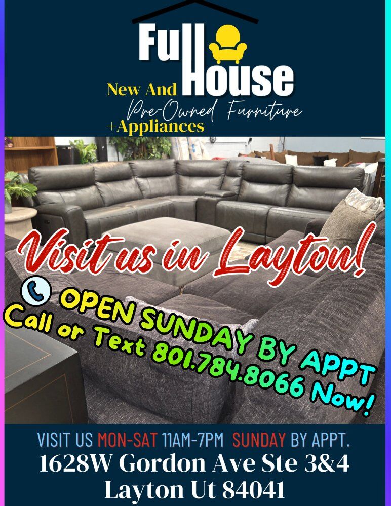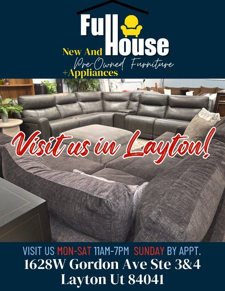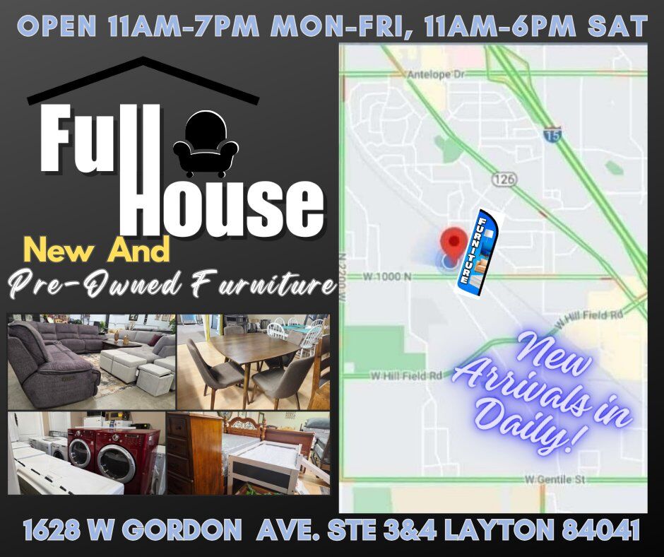 Full House Pre-Owned Furniture #sectionals #dresser #reclinersofa #couch #decor #tables #chairs #diningroom #livingroom #homefurnishings #homefurniture #furniture #beds #Sofa #diningchairs #chairs #snapfinance #ACIMA #Moving #barstools #stools #leather #loveseat #recliner #graysofa #bedroom #Mattress #full_house_pof #layton #utah #new #used #nightstand #power #smallbuisness #layton #delivery #haulaway #preowned #washer #dryer #fridge #frame #shelf #futon #cofeetable #endtable #modular #clearance #sofasets #google #2026 #sillones #muebles