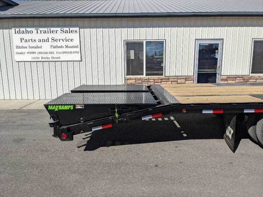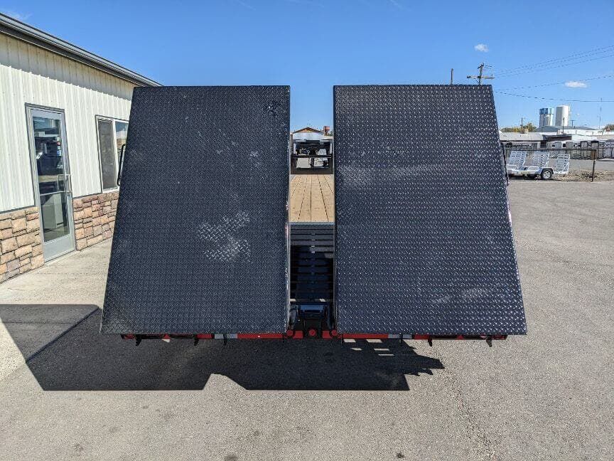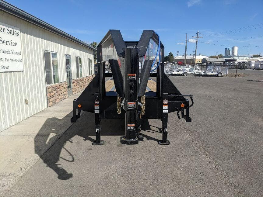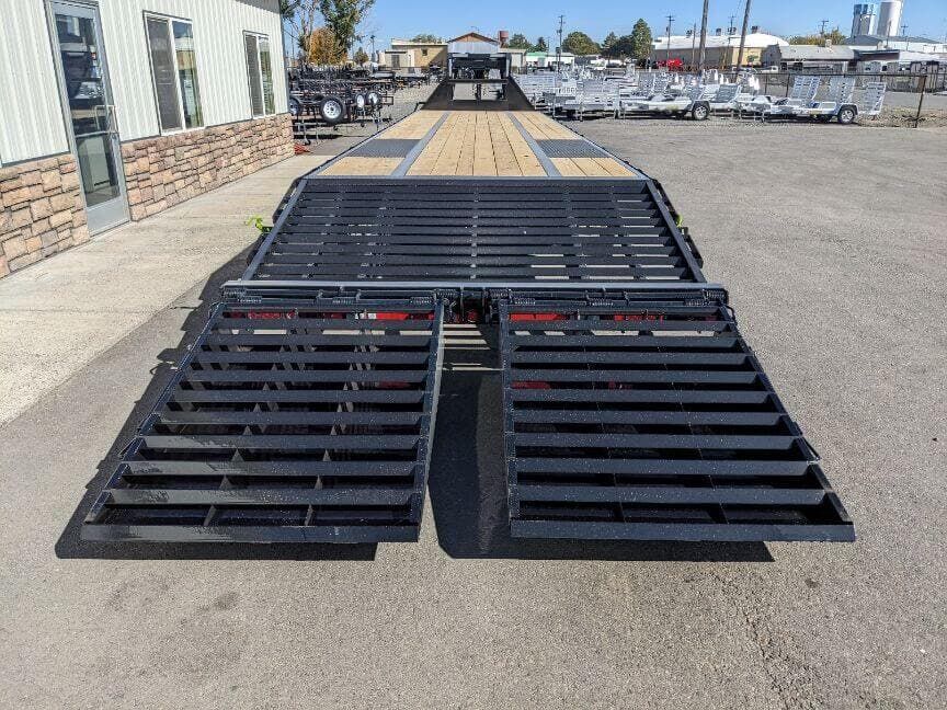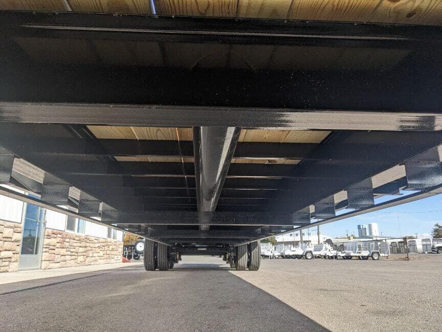 |This model boasts a rugged 40-foot length and a width of 8.5 feet, optimized for maximum payload and ease of transportation. The heavy-duty 12-gauge I-beam steel frame, combined with a treated wood deck, ensures enduring durability and stability. The trailer's gross vehicle weight rating (GVWR) of 25,900 pounds enables it to handle sizable loads with confidence.