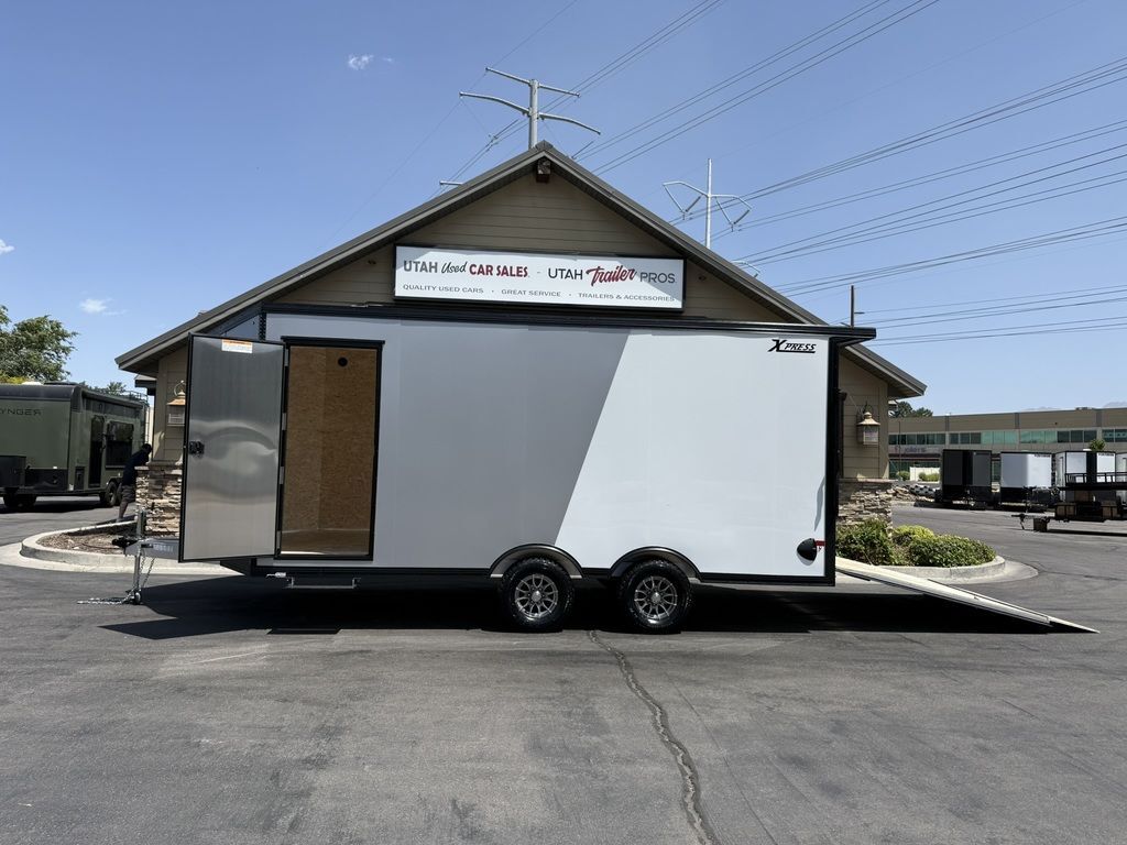 BACK IN STOCK!!! GETT'R BEFORE SHE'S GONE!!! 5,200# AXLES!!! 10,400# GVWR!!! OFF ROAD TIRES!!! 8.5x18 Xpress UTV Pkg XTRA TALL!!! 84 Inch Rear Entry with 87 inches of Interior Height!!! TONS OF EXTRA'S!!! Keyed Alike Ramp Door Hasps/Locks and Side Access Door!! Manual Roof Vent! 14x14 Fuel Passthrough Re-Fuel Door! 4 YEAR FACTORY WARRANTY!!! UTV Pkg includes extra height, Torsion Axles, Spread Axles, Upgraded Aluminum Mag Wheels, V-Front, 36" Sloped Design, (2) Rows of Slide Track w/ (4) Sliding D-Rings, Starter Flap, 4 Heavy Duty Ramp Bumpers, and more!!! You need to see the workmanship in person, these are not your standard cargo trailers, these are the TOP OF THE LINE!! PREMIUM!!! All Aluminum Enclosed Cargo with UTV Pkg!!! REAR CANOPY WITH RECESSED LIGHTING!!! Super heavy duty Spare Tire Mount, no breakage here!!! 7TB052694