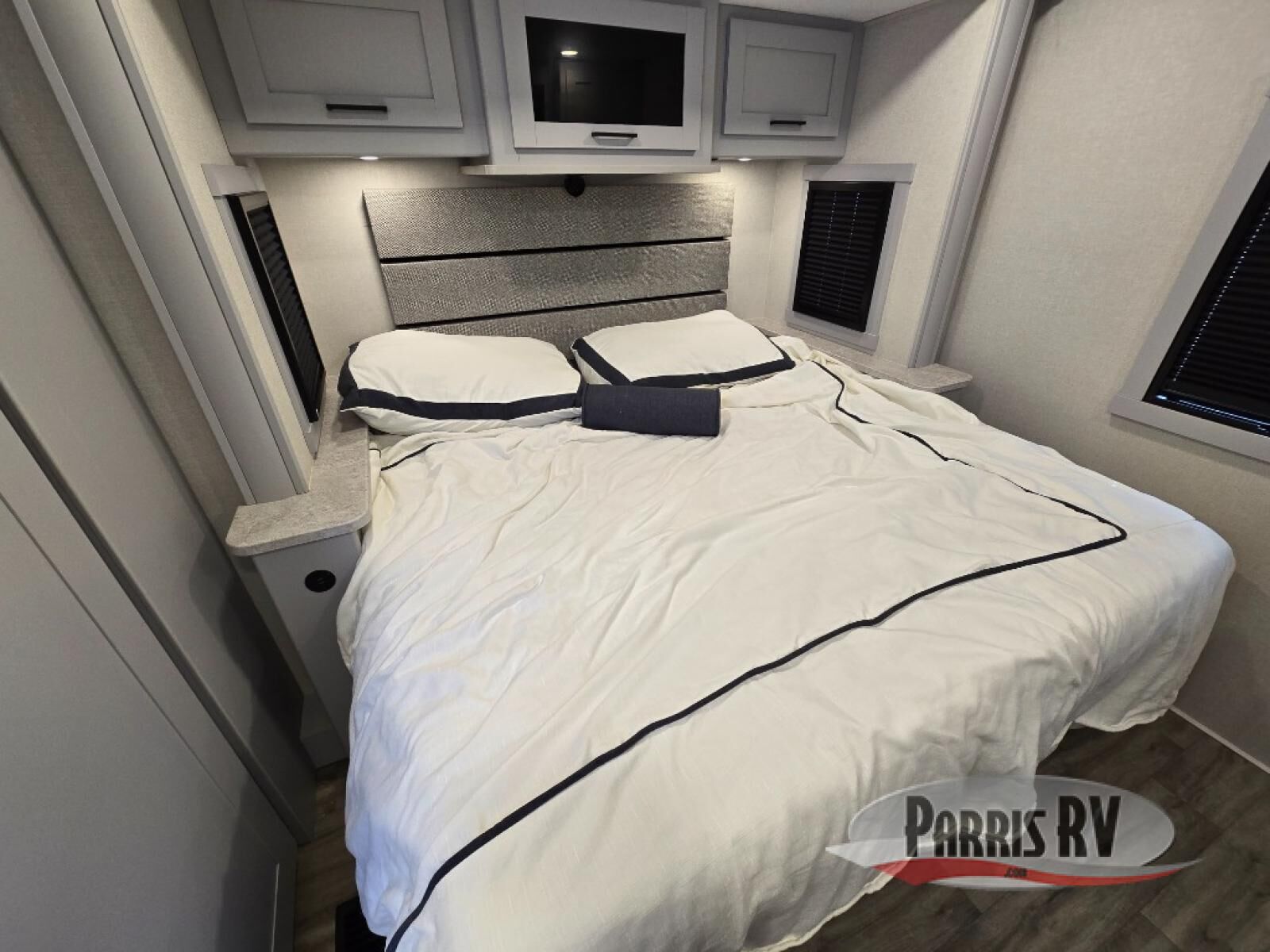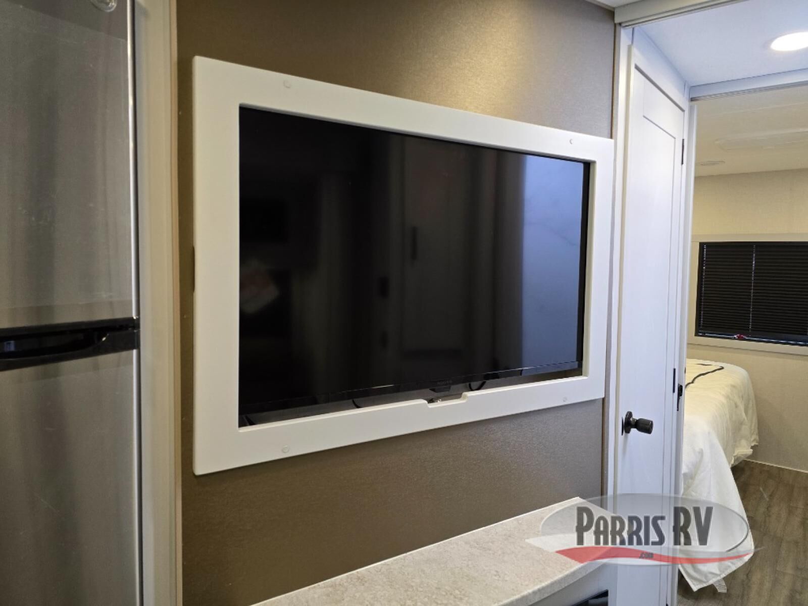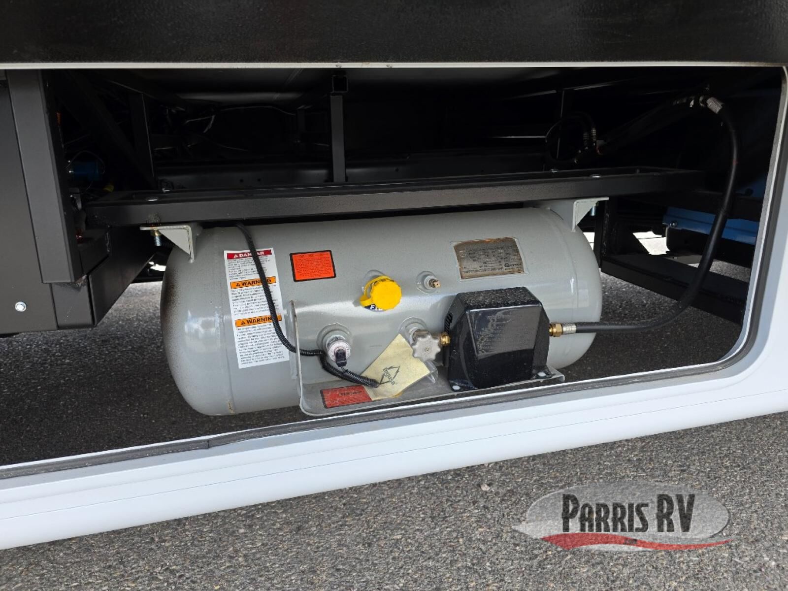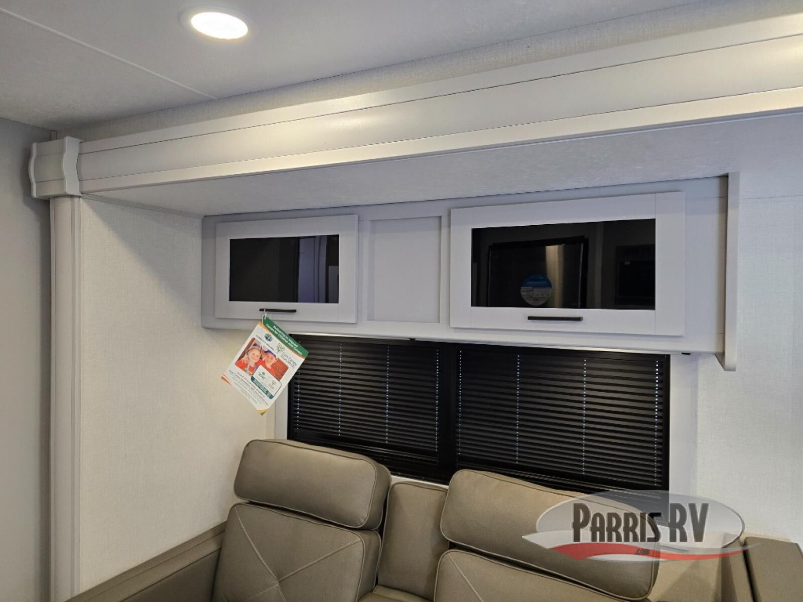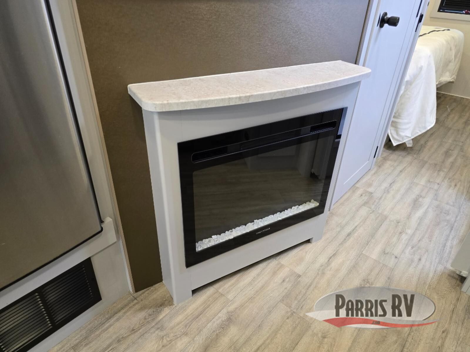 Enjoy a home away from home with this motorhome! The drop-down bunk over cab provides an extra sleeping space but can be stored away when not needed. Prepare your best home cooked meals while on the road with the stainless steel three burner cooktop and 12V stainless steel double door 10 cu. ft. refrigerator then enjoy them at the 42" x 72" booth dinette. Relax in true comfort on the 68" theater sofa across from the Smart TV and fireplace. After a long day of traveling, you can freshen up in the 26" x 38" shower while another uses the private toilet and sink. The rear private bedroom has a 72" x 76" king bed slide with a CPAP station above it and across from it there is a wardrobe, an LED TV, storage space, and washer and dryer prep!
