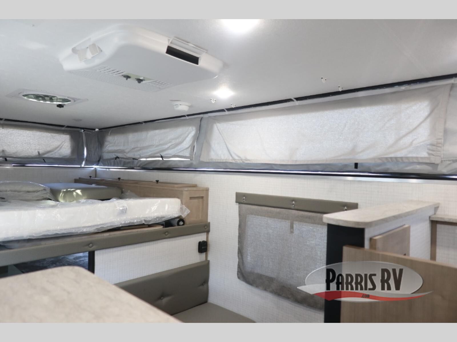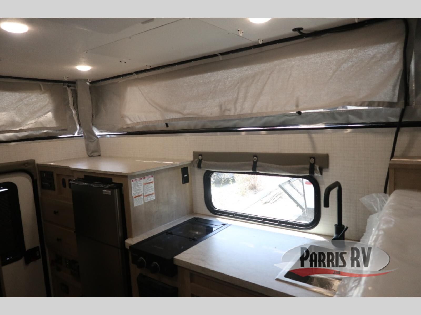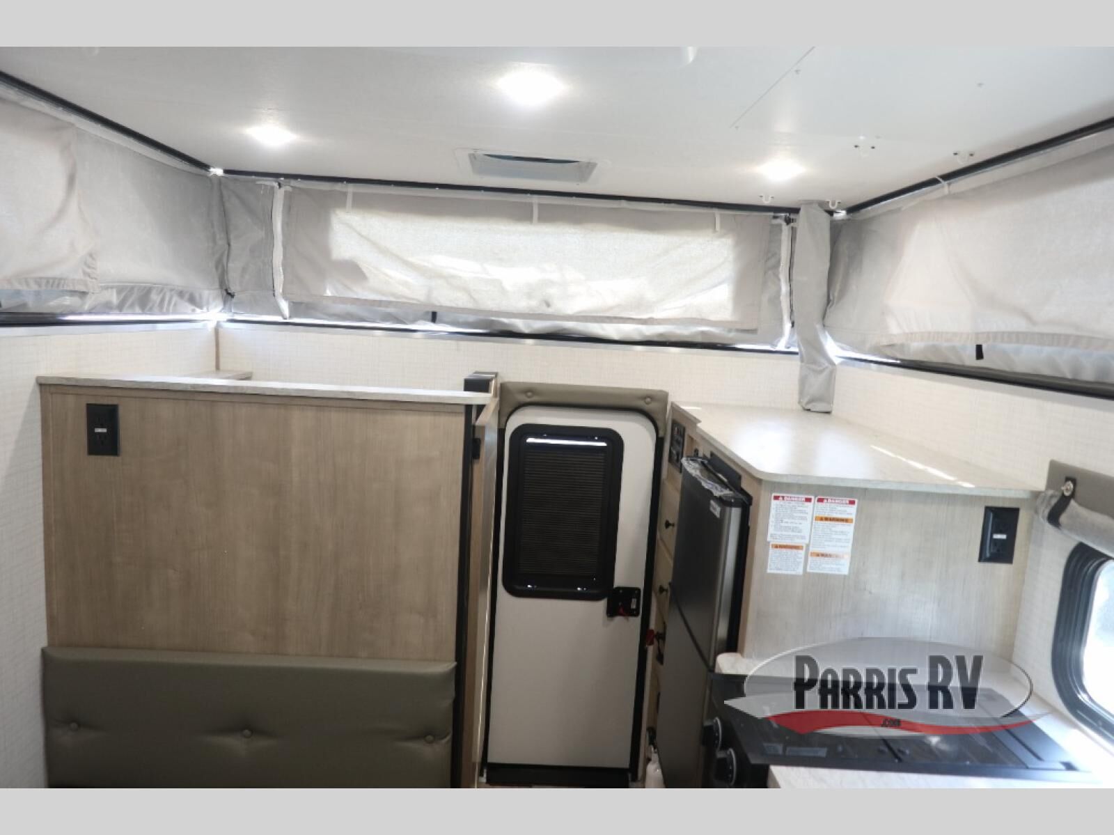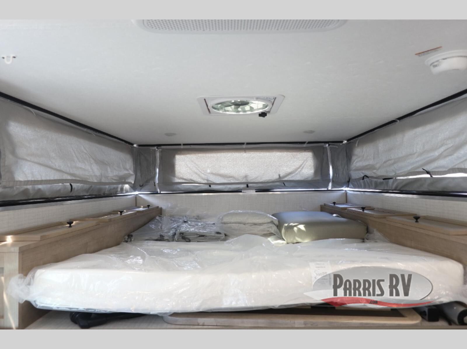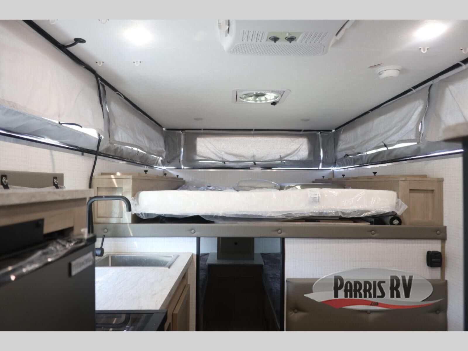 With any Palomino O.V.E (on vehicle equipment) travel trailer, you can plan to go off grid and off the beaten path! There are 15" mud tires, a Curt independent suspension axle, and a 400-watt solar panel that makes this possible. The gel coat fiberglass exterior is sure to be eye-catching, and the diamond plate adds protection against rock and debris. Each model also includes an electric pop top roof and a dual roof rack, which means you can bring along extra adventure gear. You will also enjoy many interior comforts, including a Create-A-Breeze fan for better ventilation!