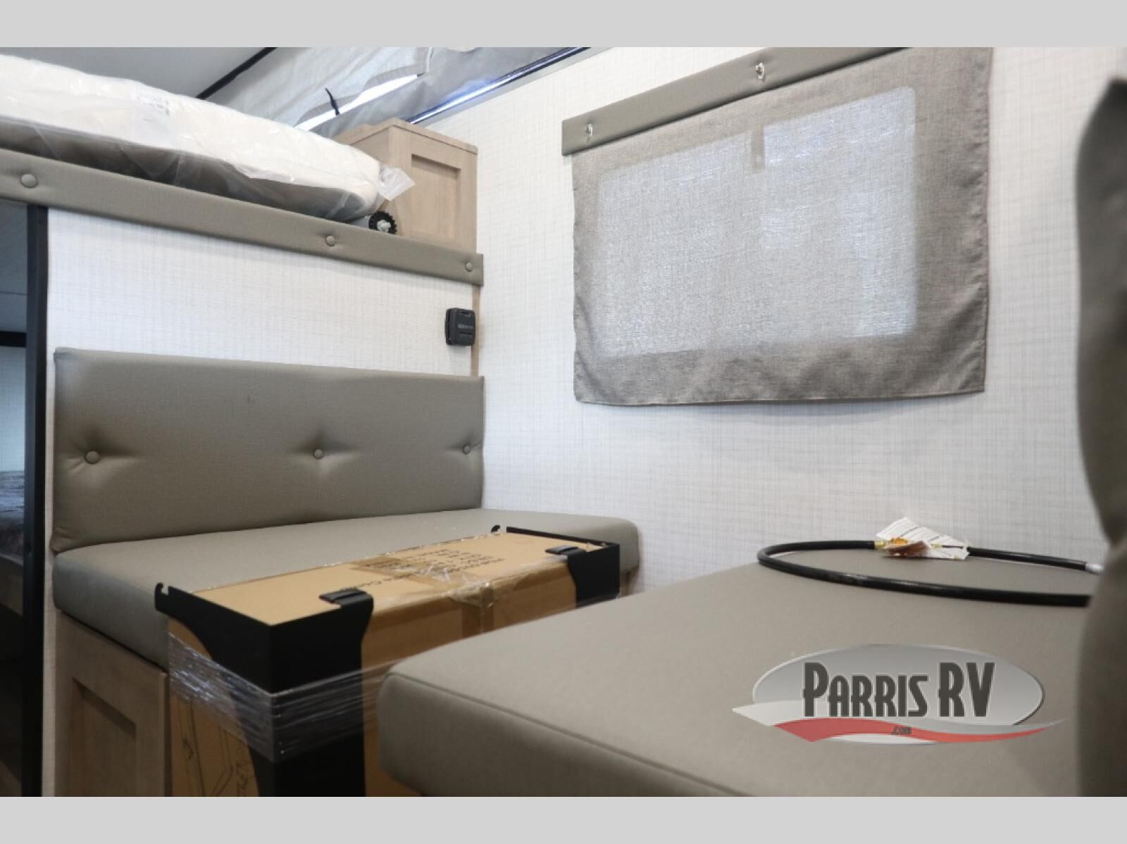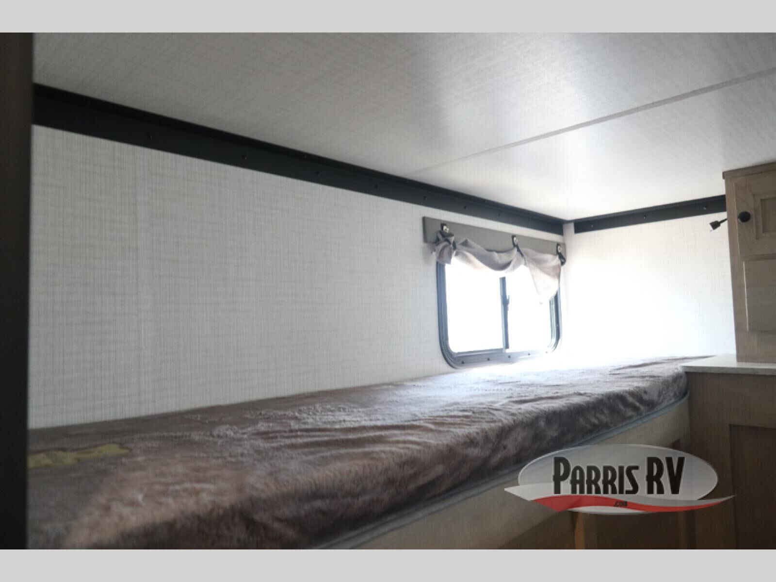 Adventure on with this O.V.E travel trailer! There is a rear entry door, with a private cassette toilet just inside the door, allowing you to quickly get back outside. You can prepare your meals on the two burner cooktop, clean up in the sink, then store perishables back in the refrigerator. There is also storage by the fridge for extra kitchen necessities. A booth dinette provides a place to dine together each day or play a game of cards in the evening. You will love the front queen bed with bedroom storage for your things, and there are two lower beds under the queen bed for additional campers!