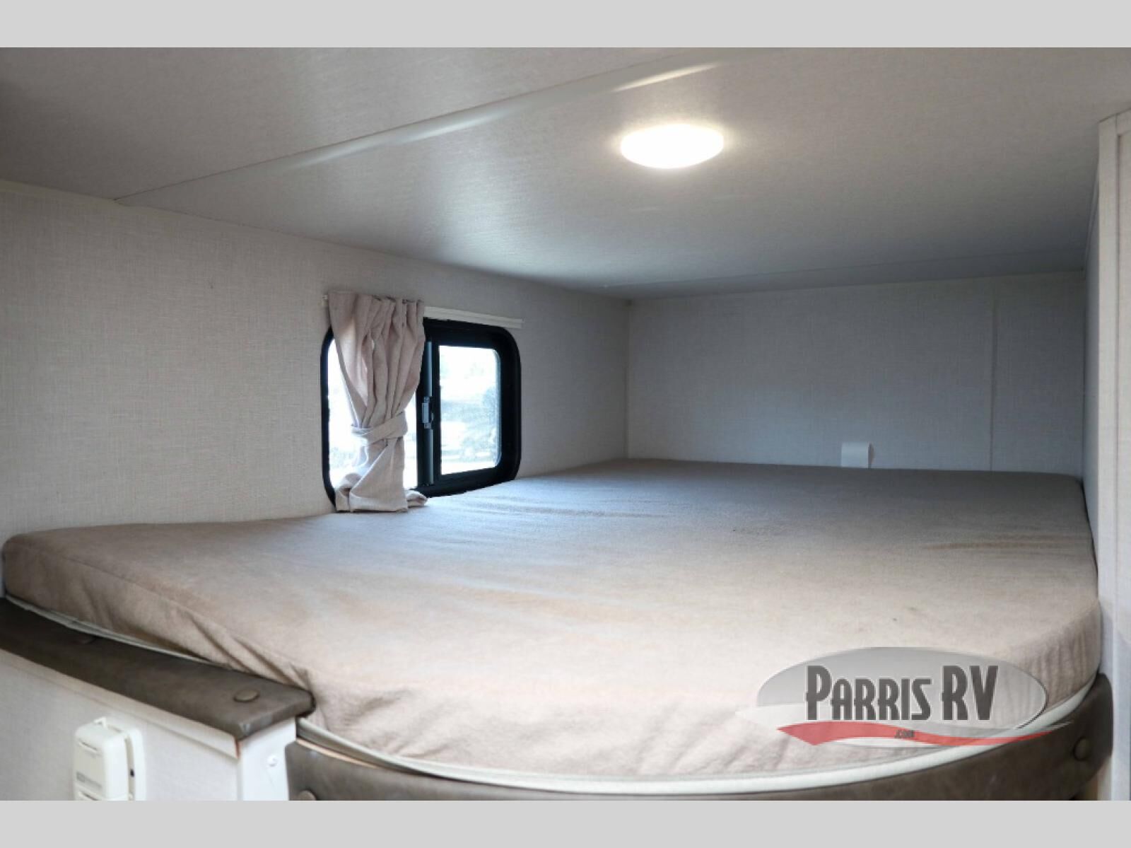 The double-size bunks with storage will be a big selling point in this travel trailer! While your guests take the bunks, you can have the front queen bed all to yourselves, and there is a wardrobe to keep your things organized. A two burner cooktop and microwave will let you make meals each day, and you can dine at the open lounge with a table.