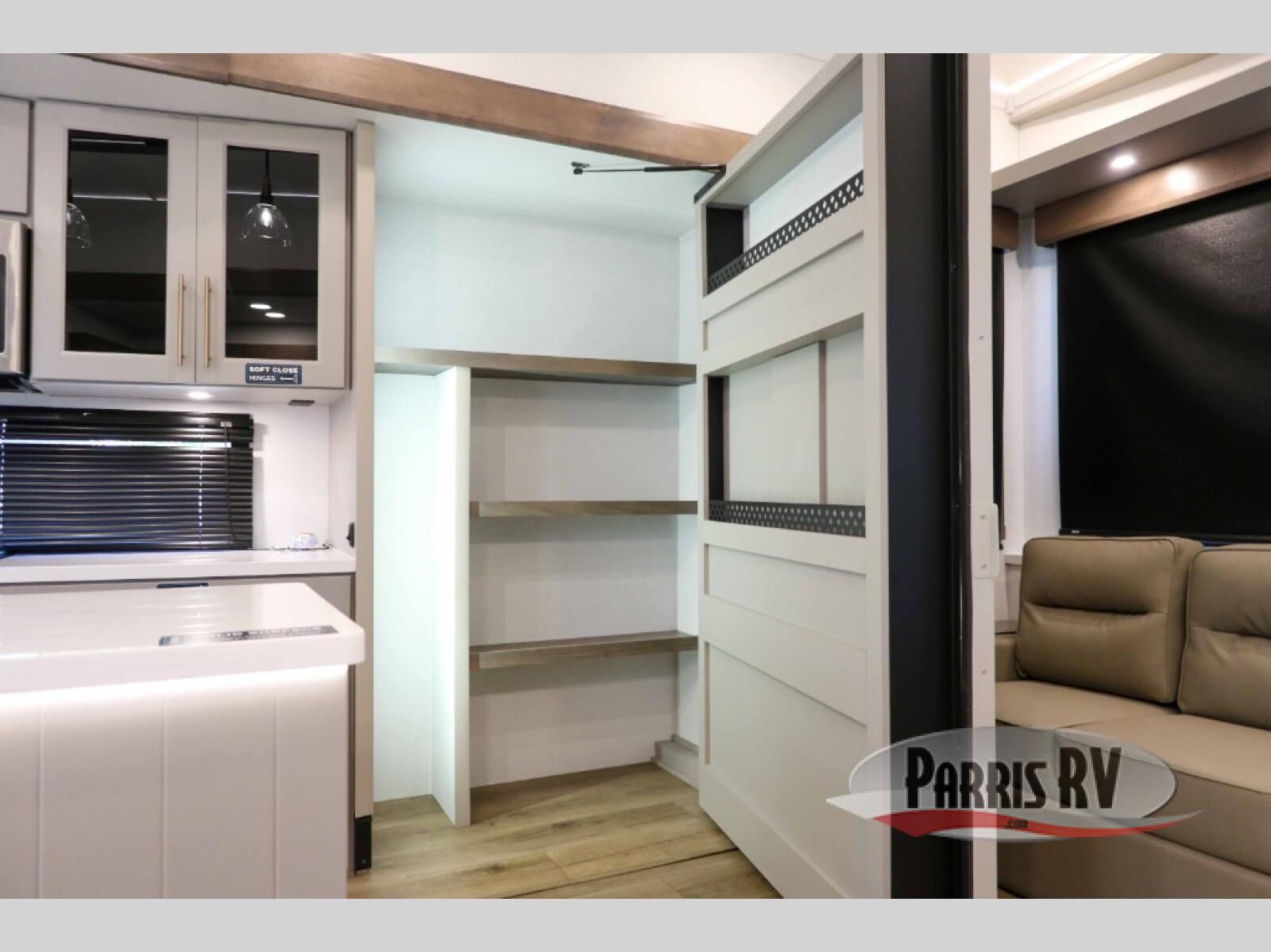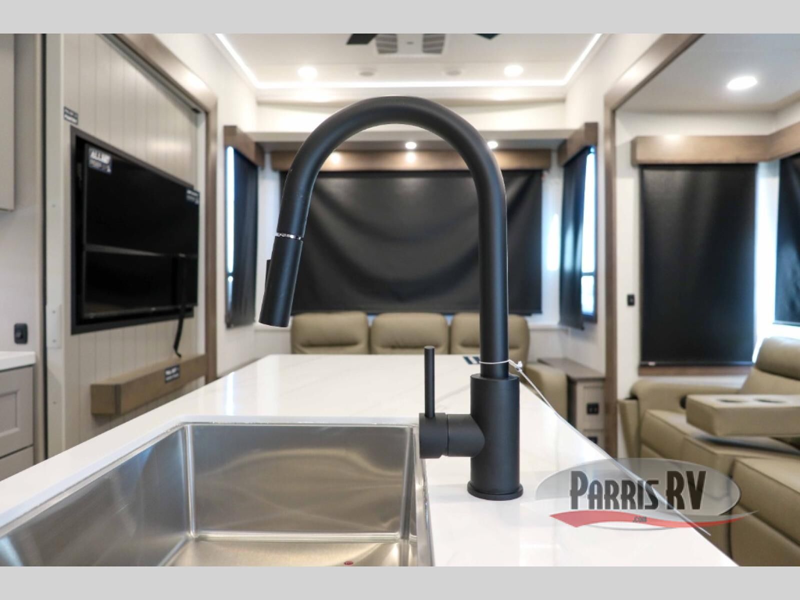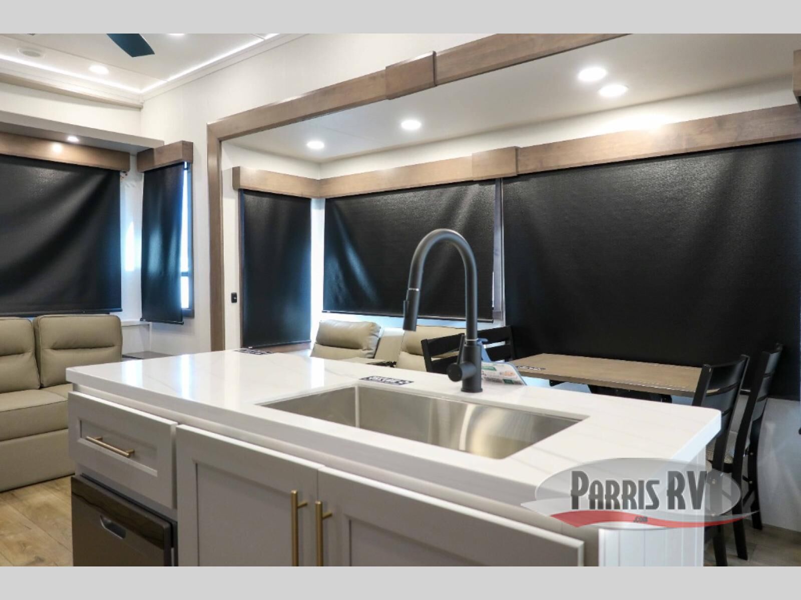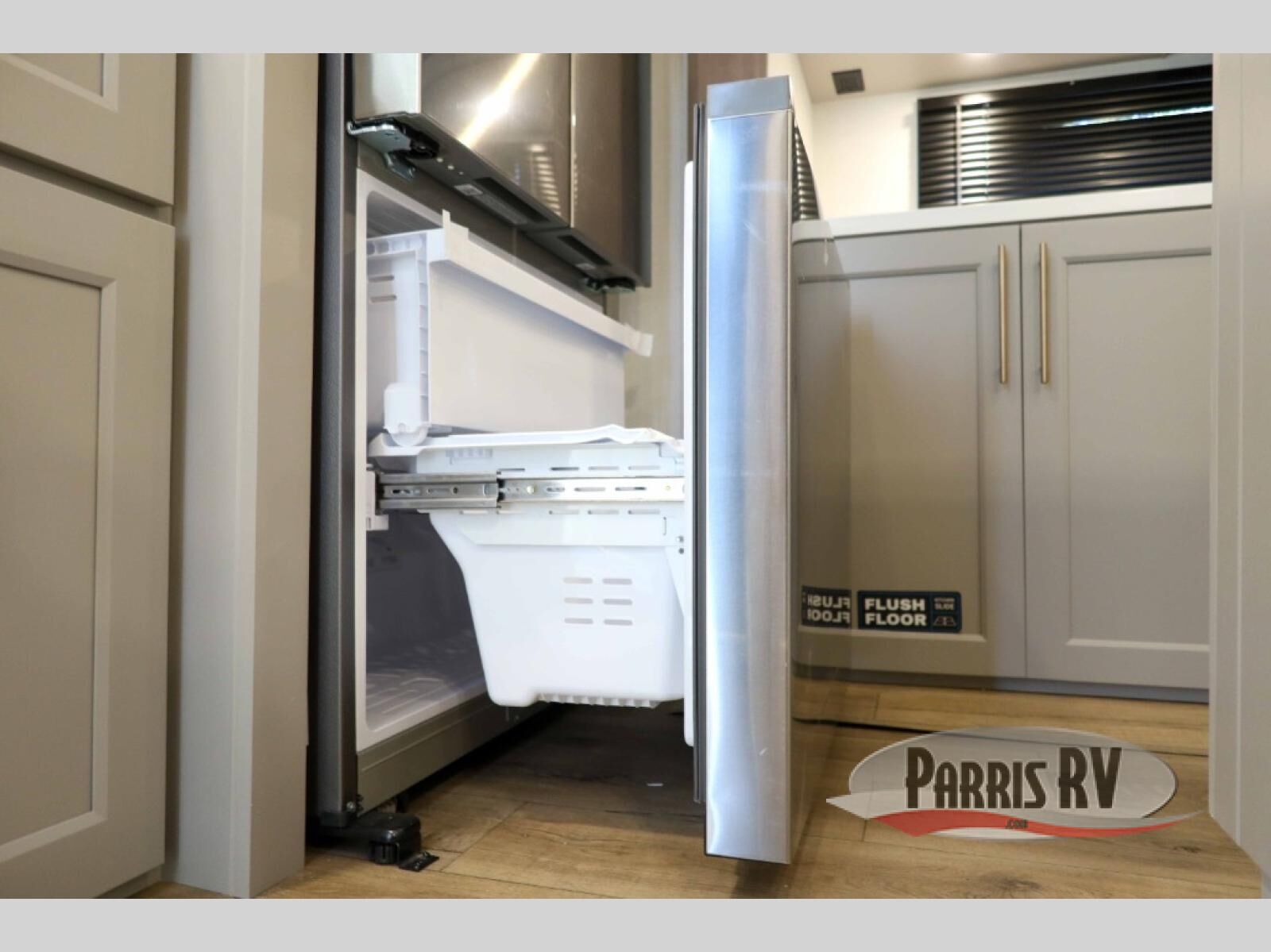 This destination trailer with a loft will be a favorite with the little ones! They will have three bunk mats to choose from plus wardrobes to keep their things picked up. You can take the rear private bedroom that includes a power tilting king bed that will allow you to sit up in bed at night to read. There is also a wardrobe, a dresser with a 32" TV, and a stackable washer and dryer to make laundry day easier than ever. A full bath with a 48" x 30" shower will let you freshen up each day, and there is a linen closet to keep clean towels close by. Everyone will enjoy spending time together in the front living area that includes a two dual recliner theater seats, a 50" TV and fireplace, and hidden storage for games or books. The chef of your group can make meals each day on the residential range and microwave, and there is a 110V Samsung refrigerator to keep your food fresh.