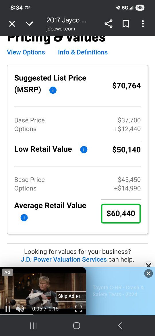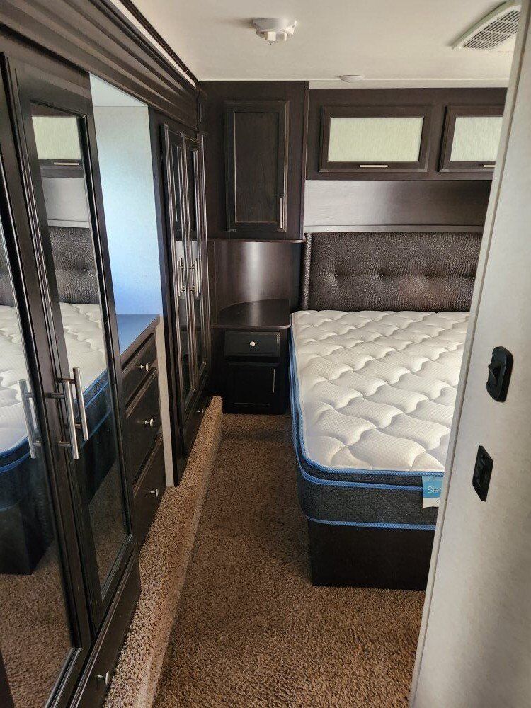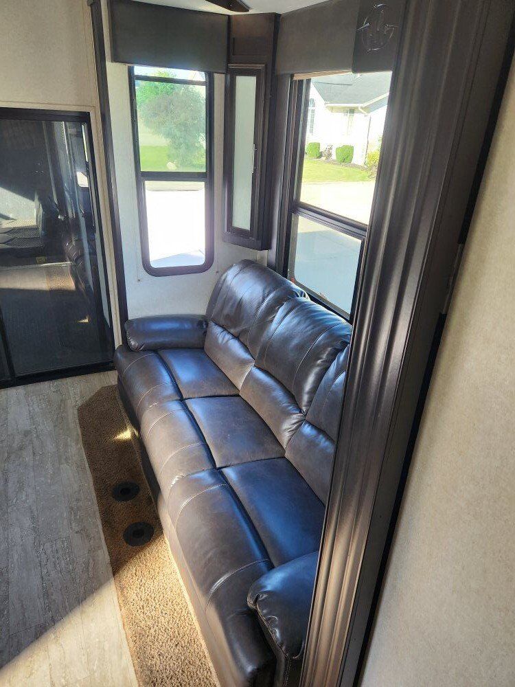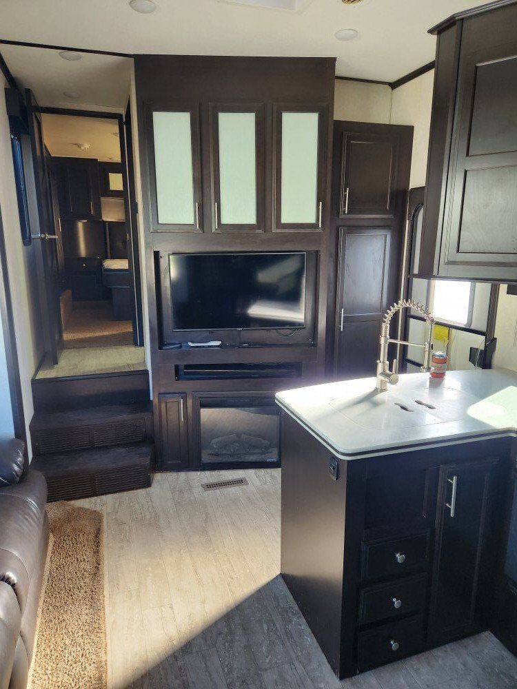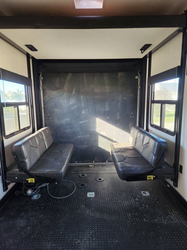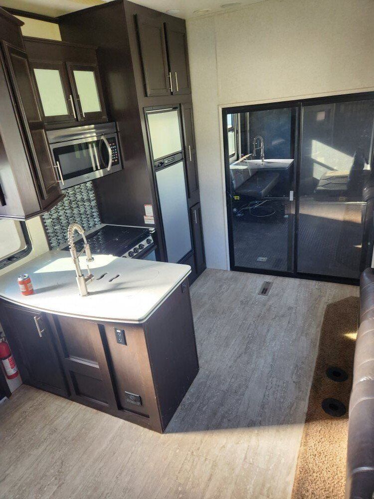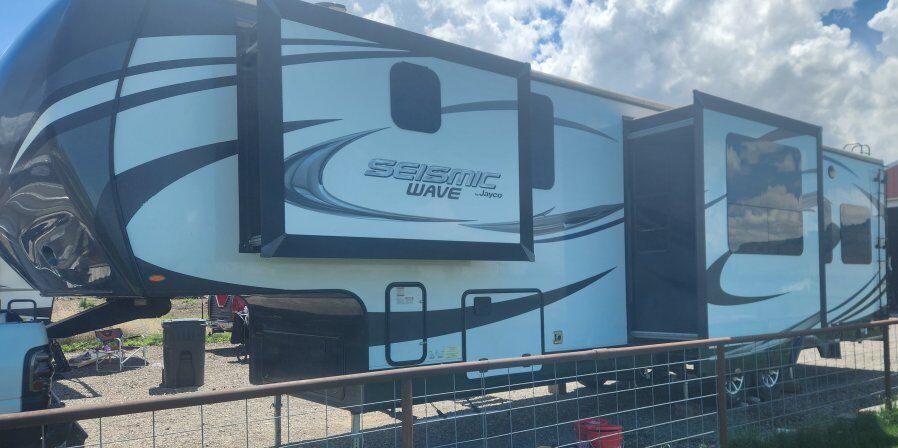 2017 jayco siesmic wave 310w. 40ft 6in long tip to tail, hold 136 gallons of fresh water and 68 gallons of gas between the 2 fuel tanks (one for the generator and one for the fuel station). has a 12 ft garage with the double bunk beds. big bathroom, with a big shower. auto leveling. onan 5500 generator with 840ish hours, it starts and runs like a top and has been serviced every year since I bought it. 3 awnings, 2 on the side and one out the back over the tail gate. tires are only 2 years old (14ply) and bearings were packed last year. everything works great and its been an awesome trailer for us, just wanting to downsize and loose a payment.. it does need a couple of the blinds replaced and it does have a couple scratches here and there but other than that its solid. asking 34000 does NOT have the big porch off the side. serious offers only please. 43585zero226six.