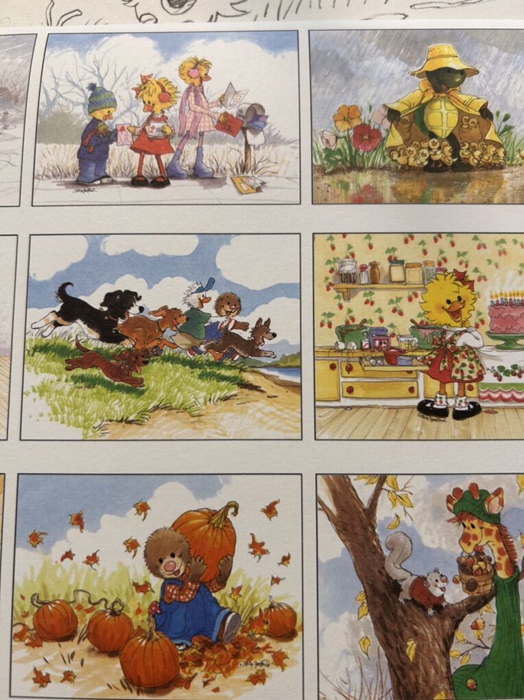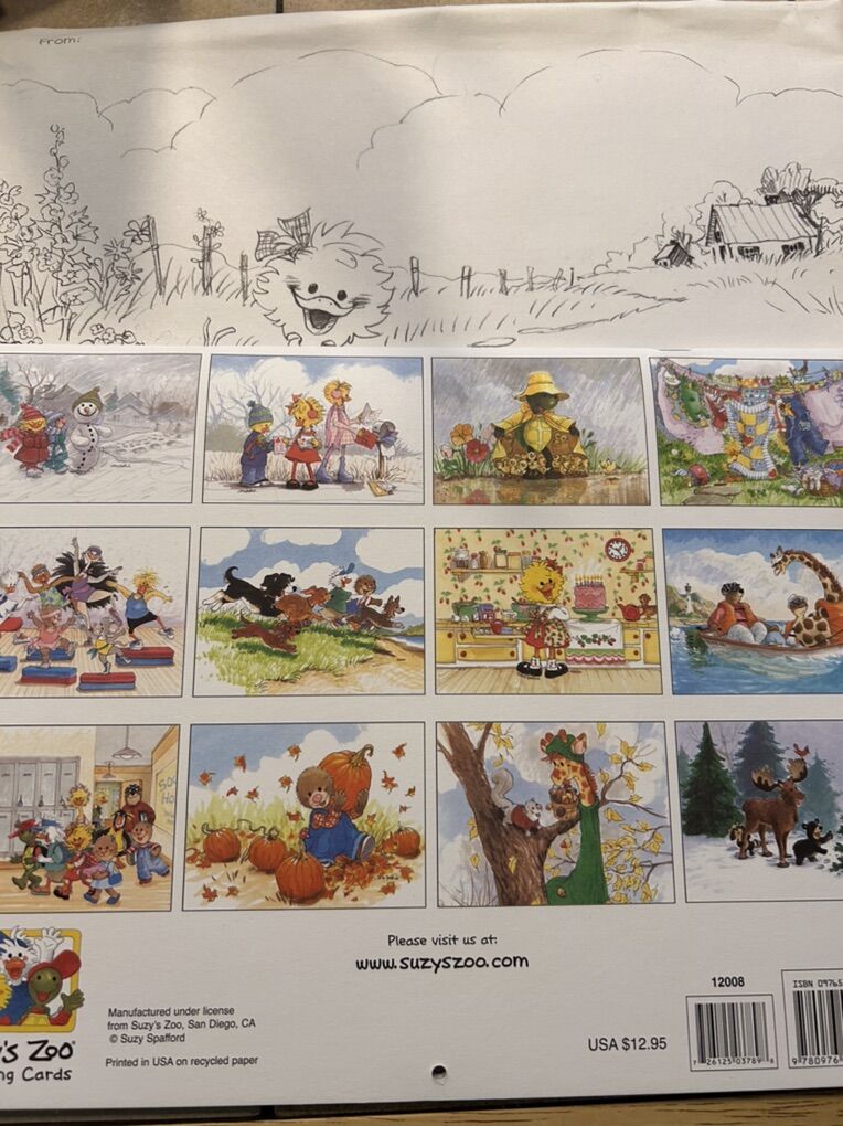 Contains 12 pages of various scenes and characters. Use the pictures for scrapbooks, decorations or other craft projects. Each month features one of Suzy Spafford’s adorable watercolor pictures.