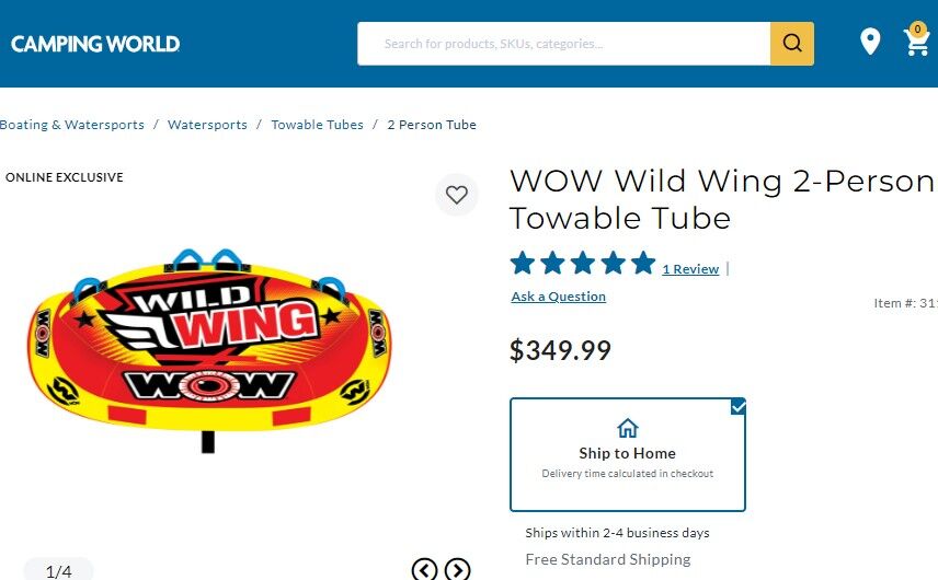 NEW- WOW Wild Wing 2-Person High Back Towable. Inflated only for photos and inspection. It has never been in water. No Scam, Please.