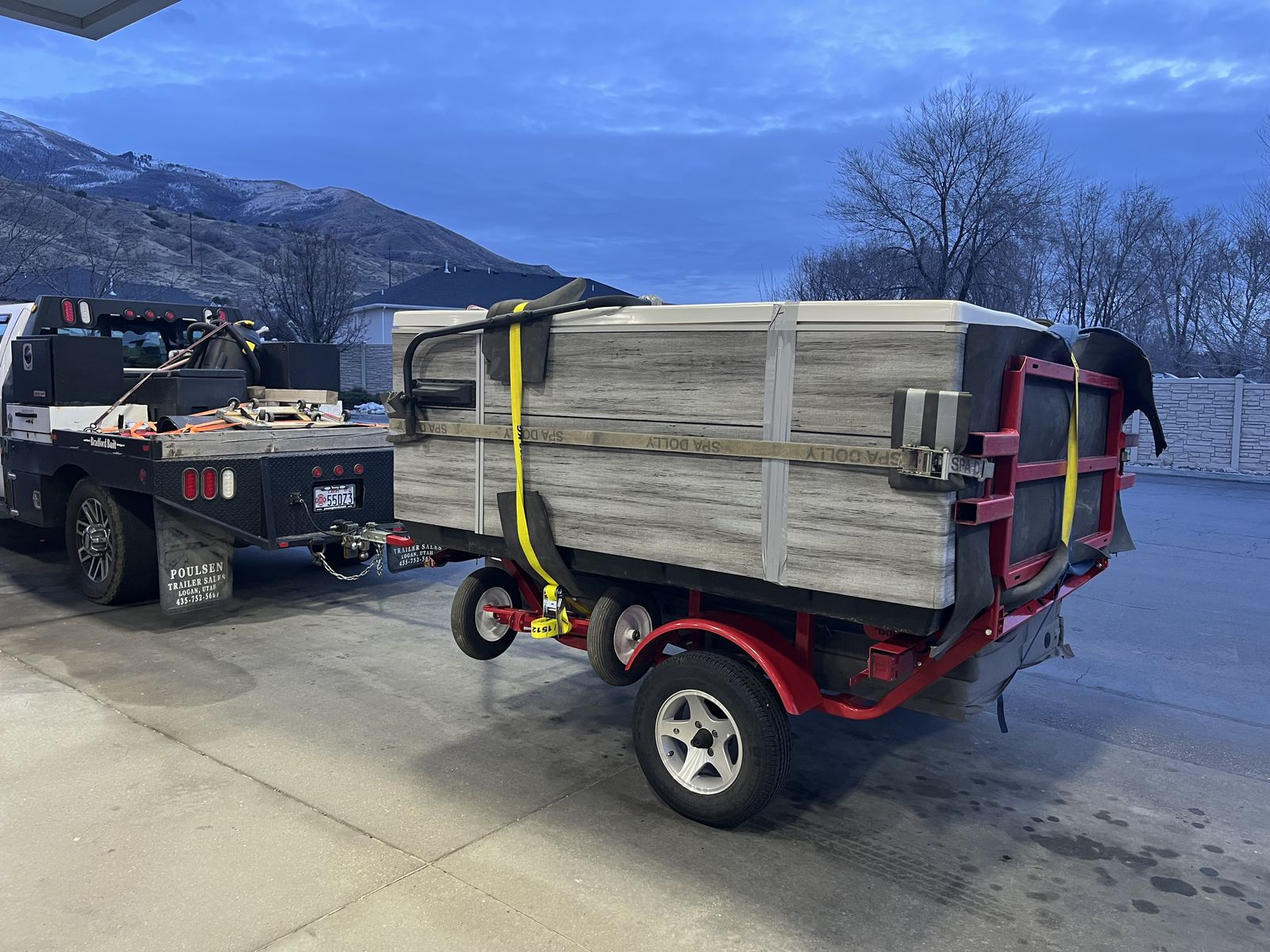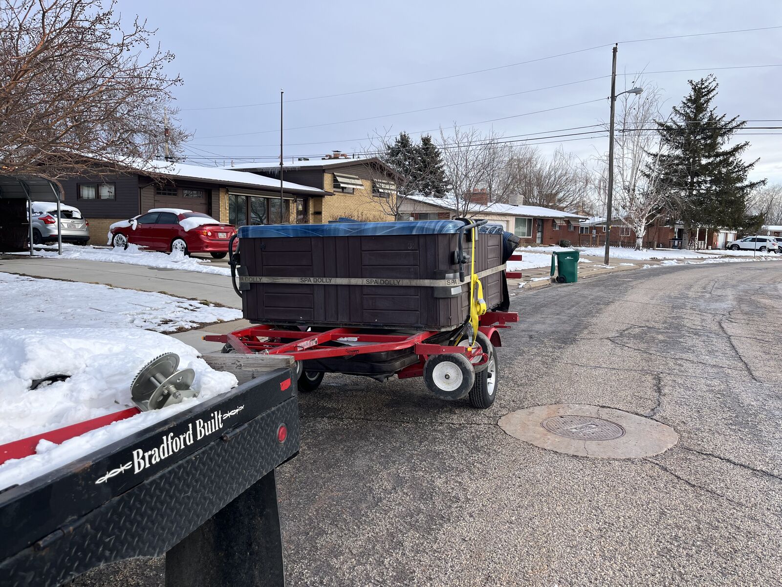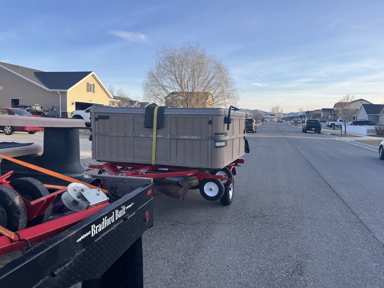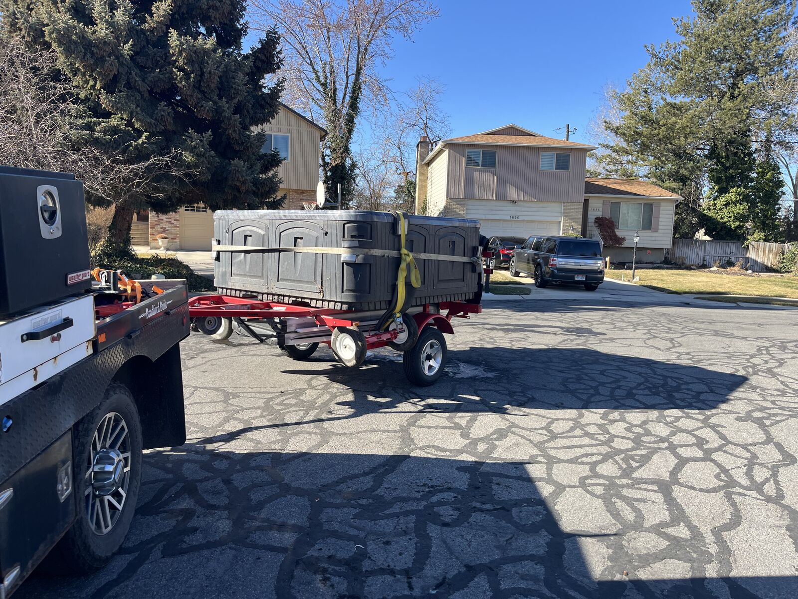 VenmoRent my Spa Dolly Trailer. It’s the easiest and safest way to move a Tub, I will give you everything you need to do it yourself. If you would like a bid to have it moved I can give you one, feel free to call or text with any questions.