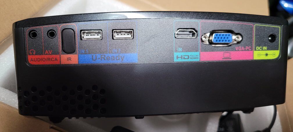 excellent condition portable projector . the portable beamer gp80 in box, new condition. has usb, hdmi, av with cord inputs. internal speakers but also has audio output. great projector for parties, great for movies and gaming. huge screen capability and perfect for out-door movies as well. hook to your DVD player or other video device. asking 30. cash only!!!
