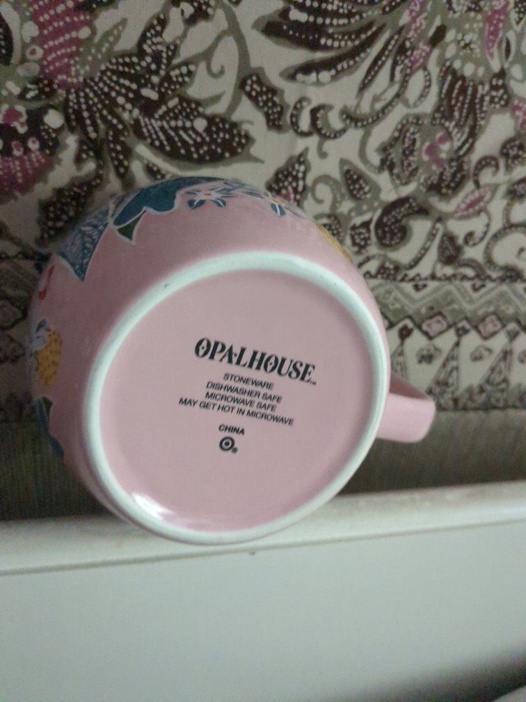 VenmoOpalhouse stoneware 16 oz pink cockatoo floral print coffee mug of "Away from my desk". $15
