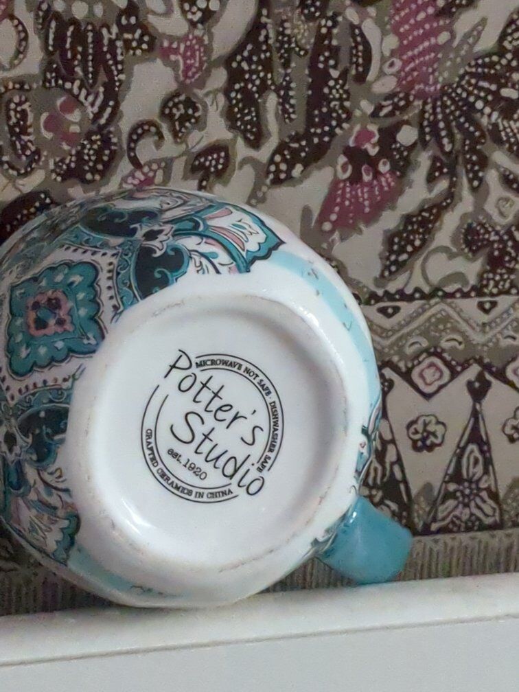 VenmoPotter's Studio turquoise, blue, pink and black with the turquoise Paisley pattern mug. $15