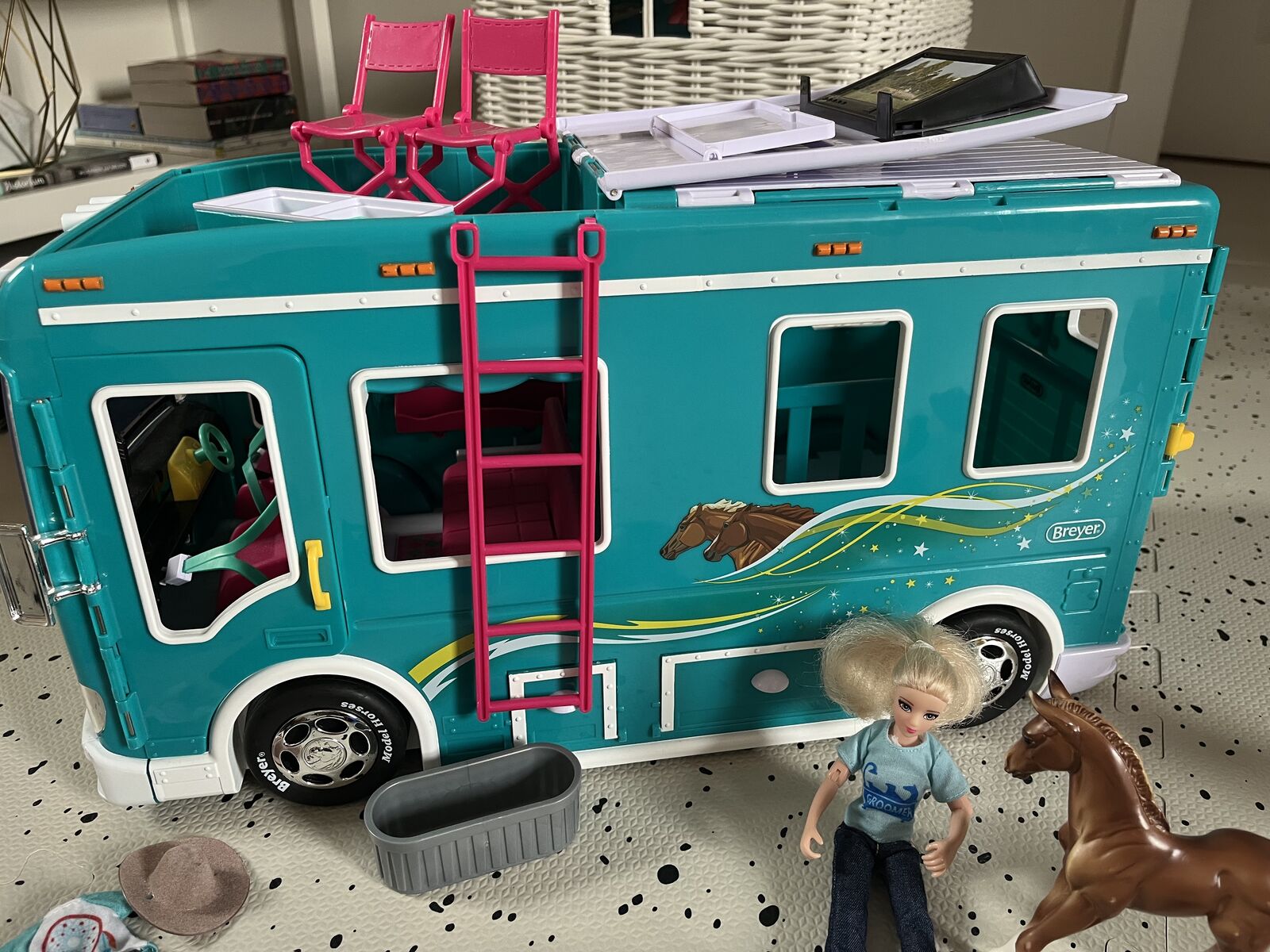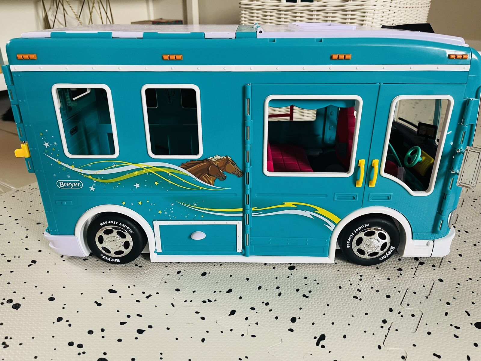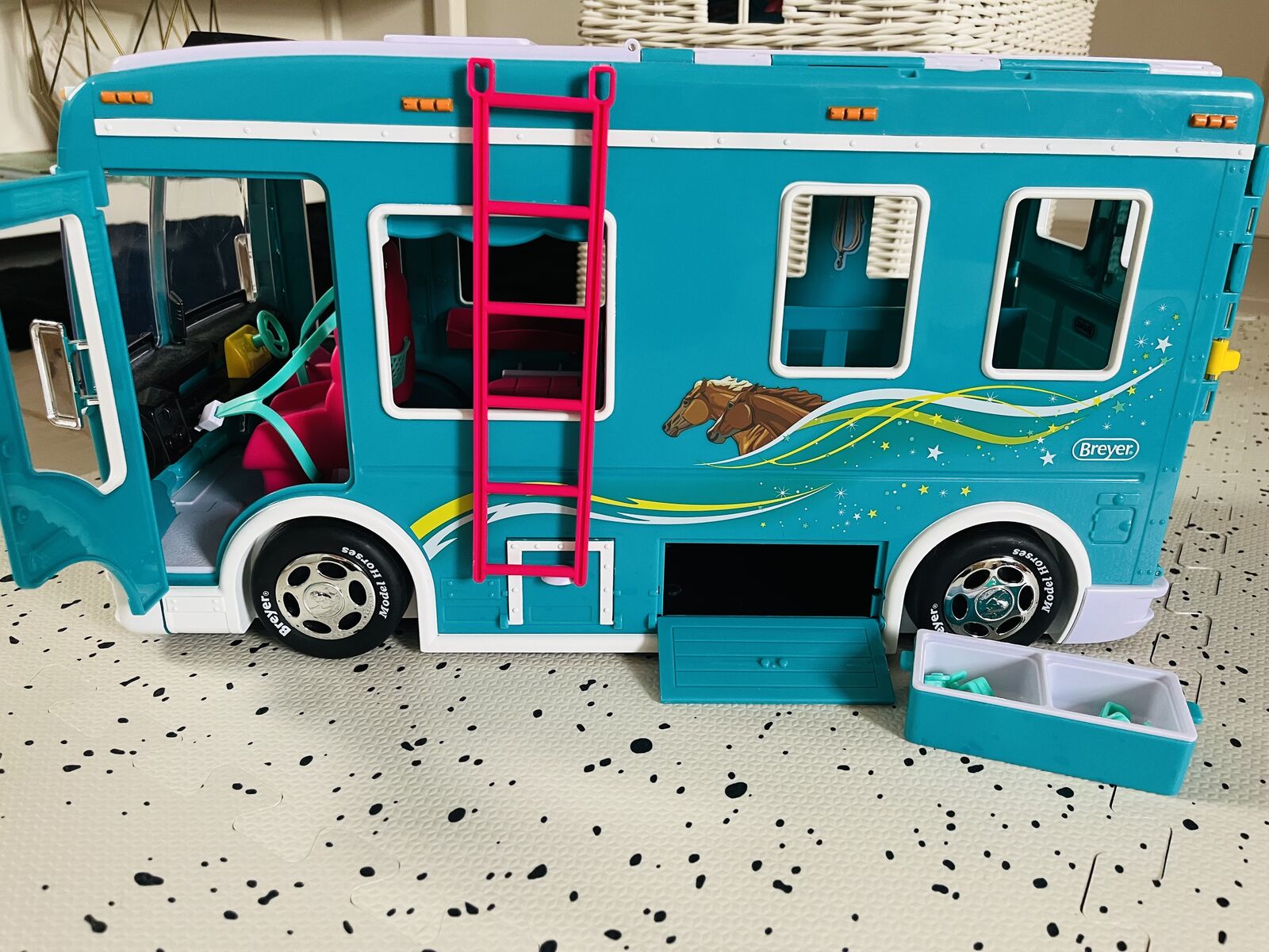The Freedom Series Horse Cruiser is a child's dream vehicle, packed with incredible luxury features for hours of imaginative fun! Featuring a snappy teal exterior and bright raspberry seating, this home-on-the-go ensures that Freedom Series horses and riders travel in comfort and style.