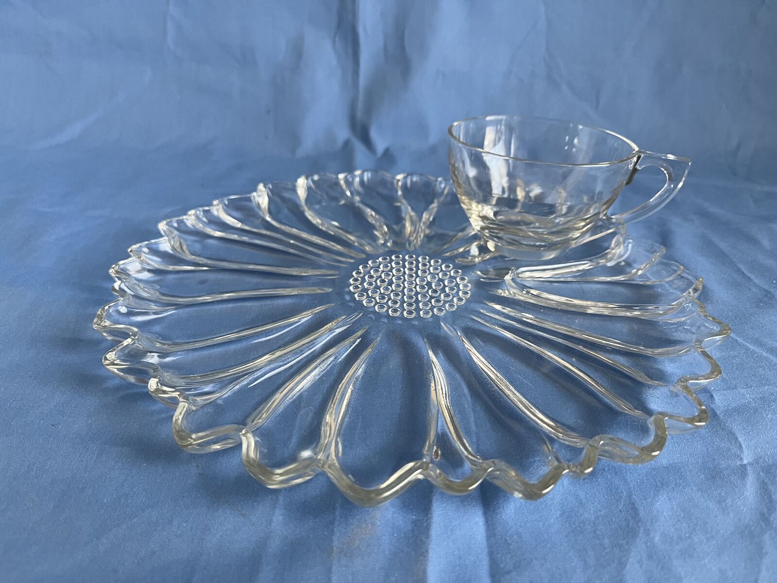 VenmoThese snack sets were very popular in the 1950s and 60s. This particular style was produced in the 40s and 50s. This set belonged to my mother who used them exclusively for her ladies club that met monthly, which meant that she hosted about once a year. They were used for llight refreshments and some type of drink. The plates even have an indent in the surface to hold the cup in place. This vintage MCM Snack Set includes 8 of the 10 inch plates and 8 cups. There are no chips or cracks on any of the plates or cups. If you want more than just a set of 8, I do have another listing for a set of 6 (12 pieces in all) that you could add to these .