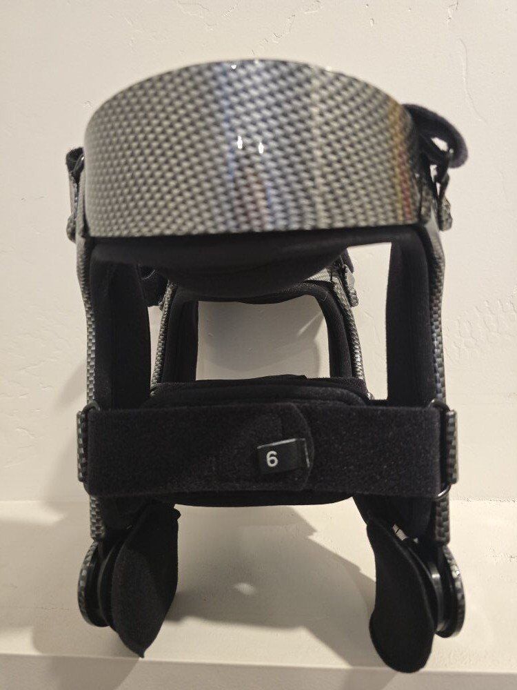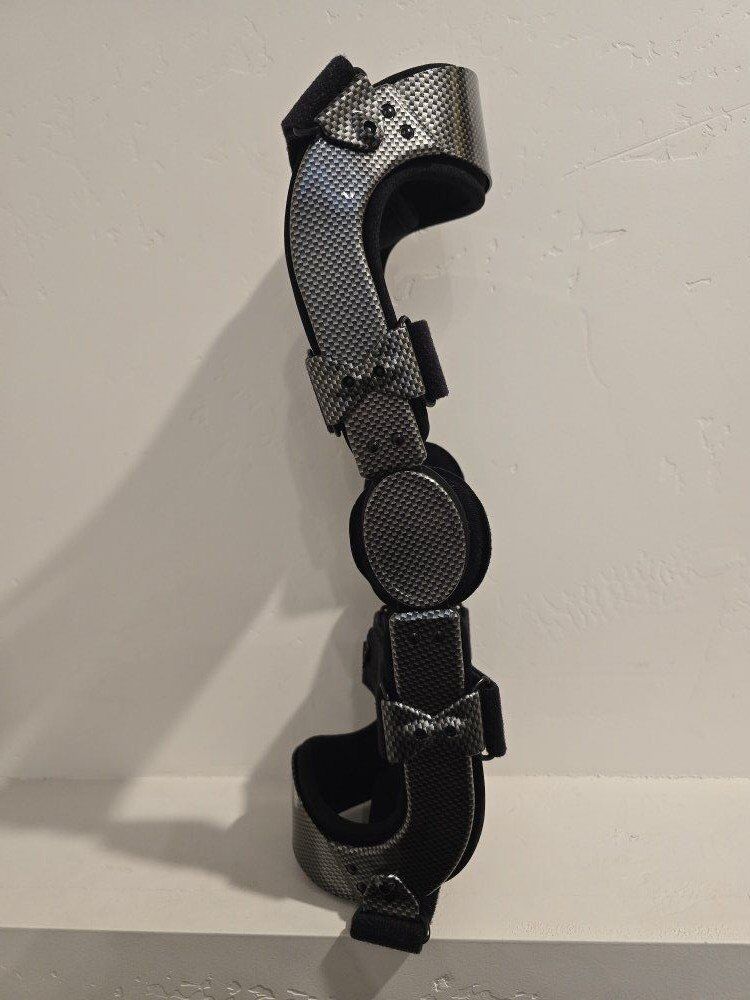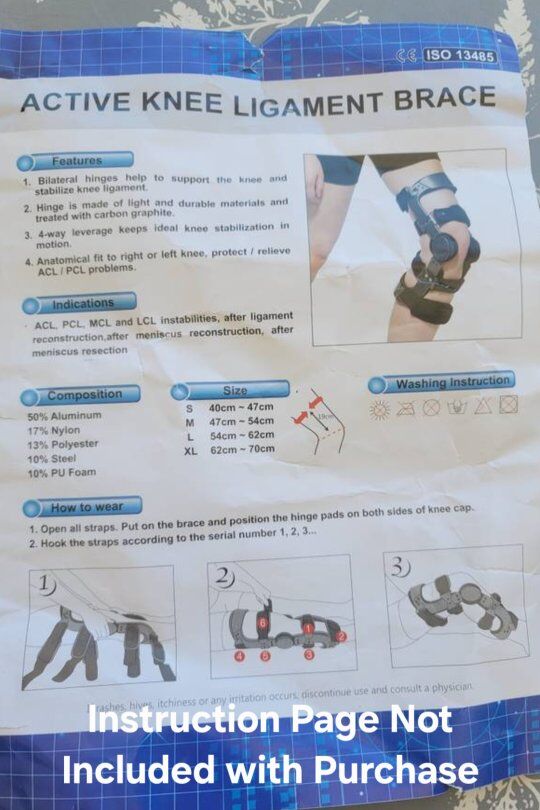 ZelleThe product is a lightweight knee brace designed for stabilization, suitable for both men and women. Made with carbon graphite treatment, this is also composed of aluminum, nylon, polyester, steel and PU foam. It is specifically designed for the knee area to provide support and help with mobility. Ideal for those in need of orthopedic support and medical assistance, this knee brace offers a comfortable and effective solution for knee-related issues. According to any instruction paper (not included), it can be used to treat ACL, PCL, MCL, and LCL instability especially. To wear:\