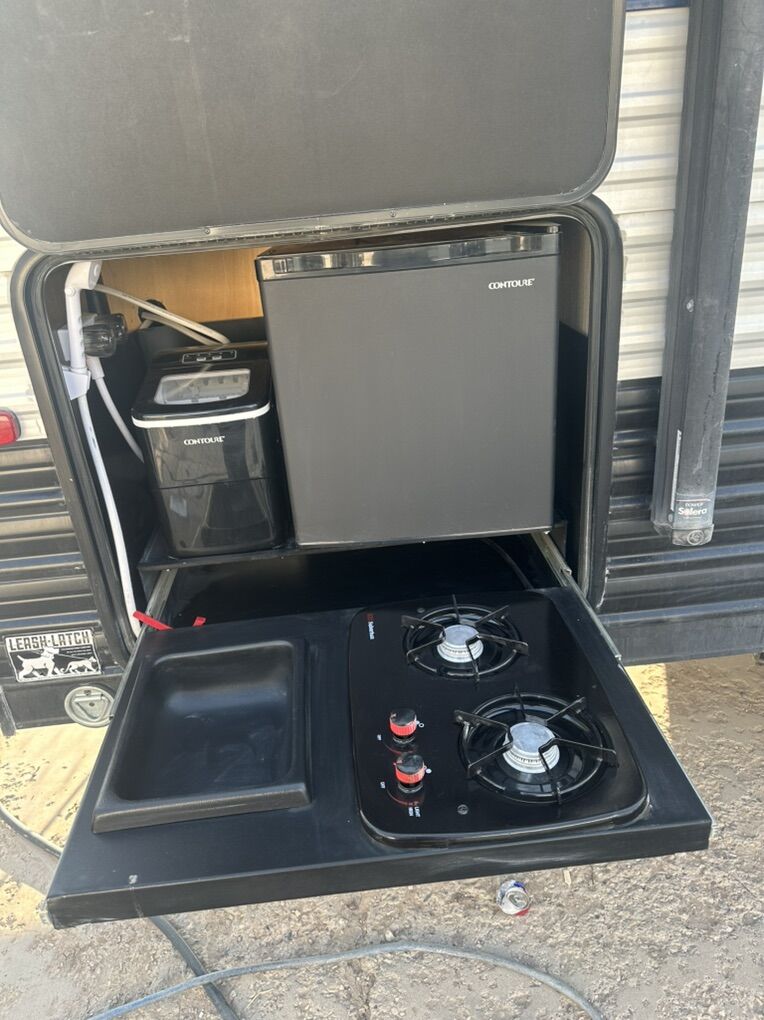 For Sale: 2021 Forest River Gray Wolf Limited Travel Trailer - 24 feet, $16,000. This travel trailer is in very good condition and features a range of amenities, including a couch that converts into a bed, a table that turns into a bed, and a queen master bed. The trailer also includes a convertible dinette and jackknife sofa, a full kitchen with large refrigerator, oven, and microwave, and a bathroom with shower. Additional features include a power awning with LED lighting, a Bluetooth stereo system with indoor/outdoor speakers, ducted A/C and furnace, and large pass-through storage. Recent upgrades include new batteries, a solar panel with an inverter, an outdoor kitchen, and an outdoor shower. This 2021 Forest River Gray Wolf Series M-24JS is an ideal choice for anyone seeking a comfortable and feature-rich travel trailer.