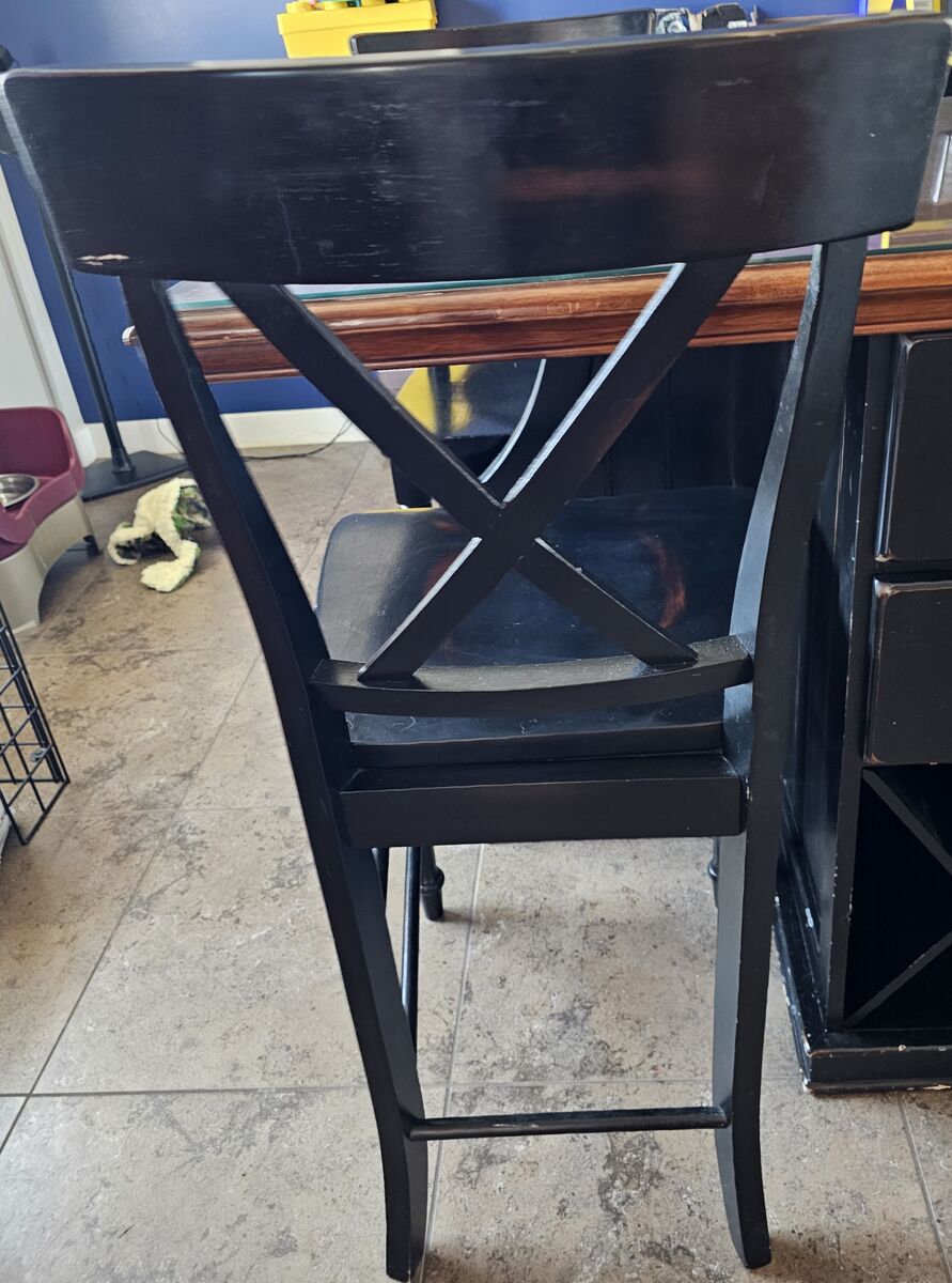 VenmoCounter height table and chairs with a real glass cover protector. Expresso colored.