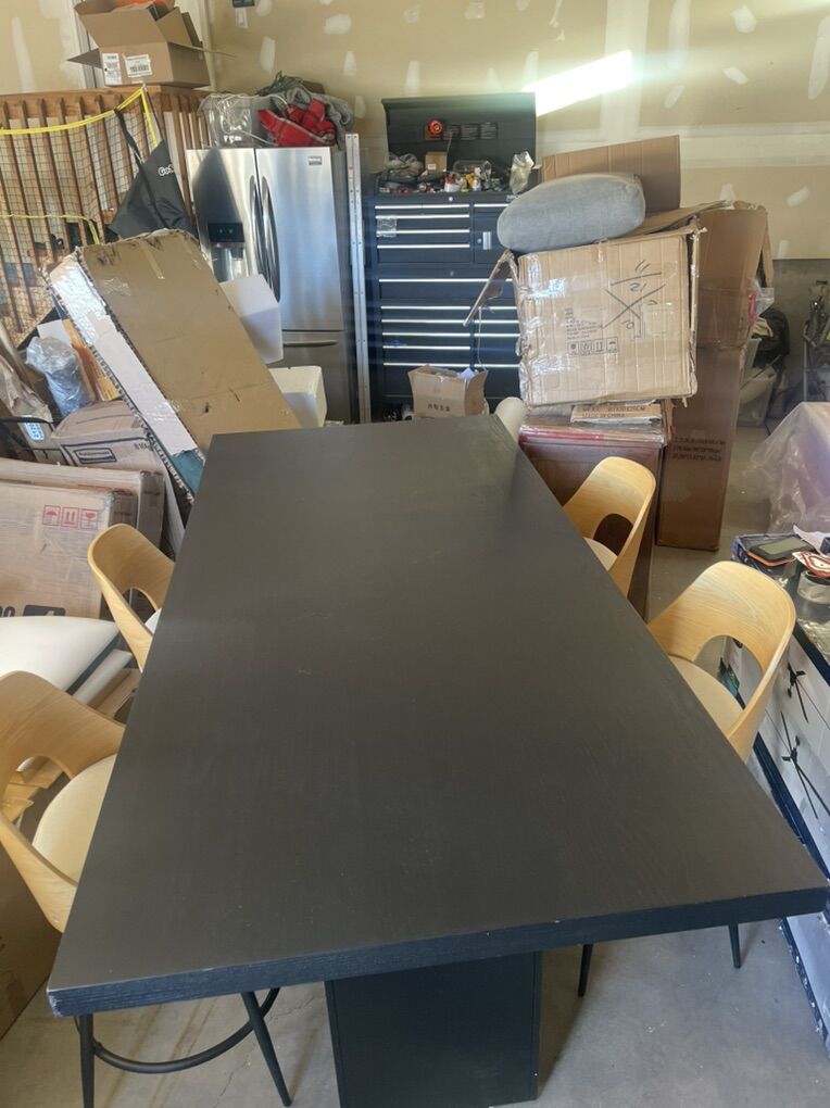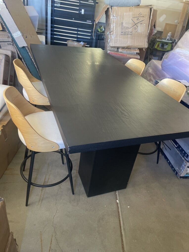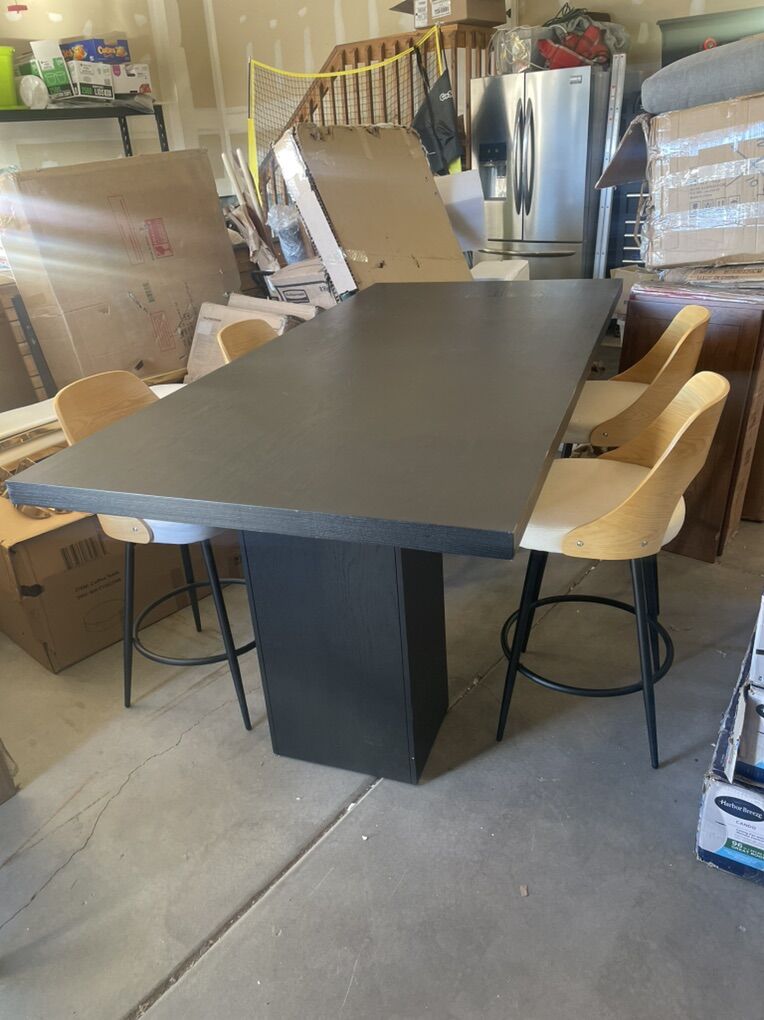 Zelle7 ft black counter height table with 4 modern barstools. Dimensions of table in pics. Pic up in Herriman. Table legs can be removed for transport.