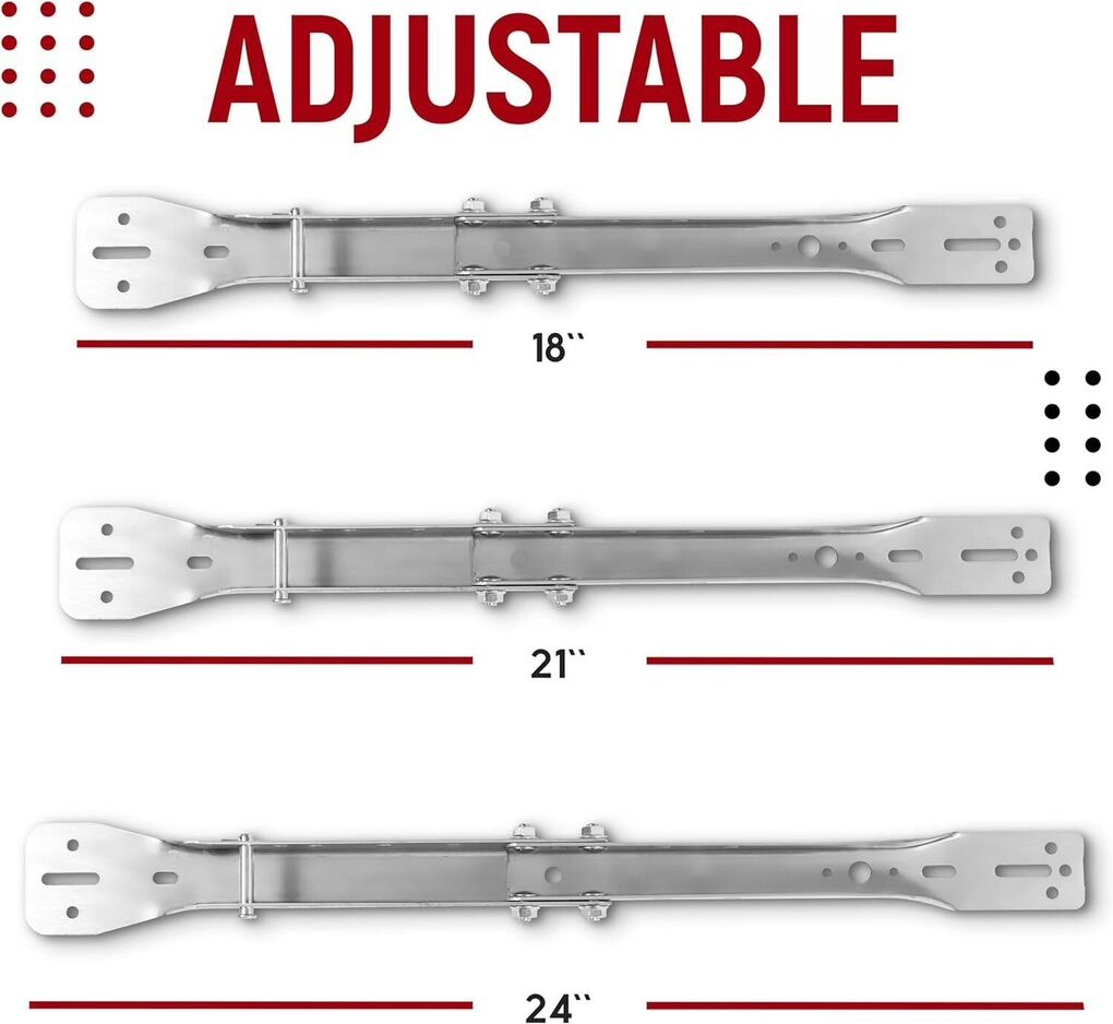Durable and Quality - Garage door reinforcement bracket is made of galvanized steel, sturdy and rust-proof, which makes it last much longer than others. Adjustment Length - Garage Door Opener Reinforcement Bracket has different holes at the top and bottom to ensure a tight connection to the garage door. Adjustable to 18, 21 or 24, easy to install.