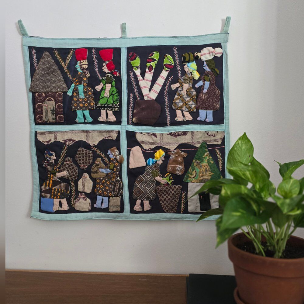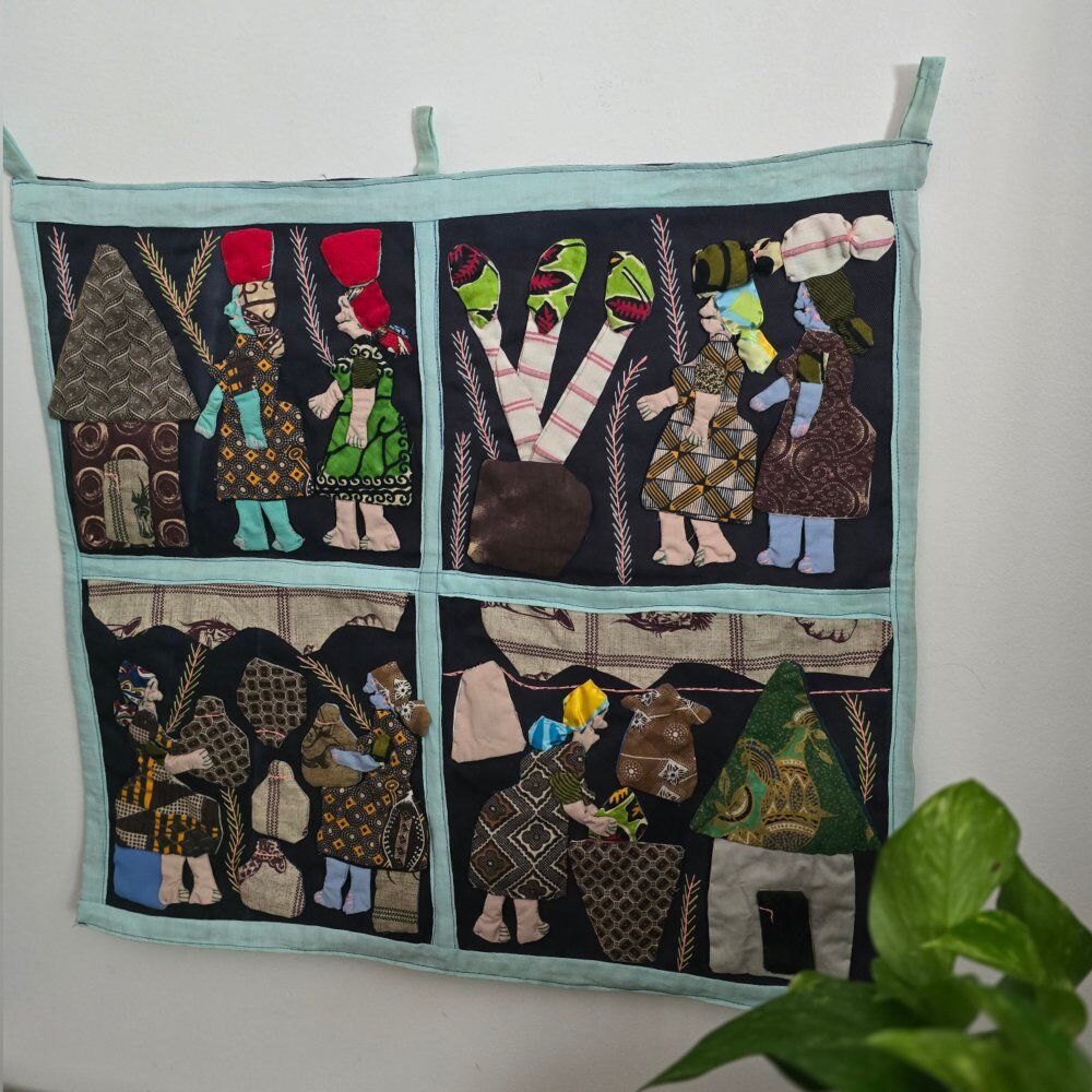 VenmoHandmade Weya four-panel story quilt tapestry depicting village life in Zimbabwe. All scenes are hand sewn.