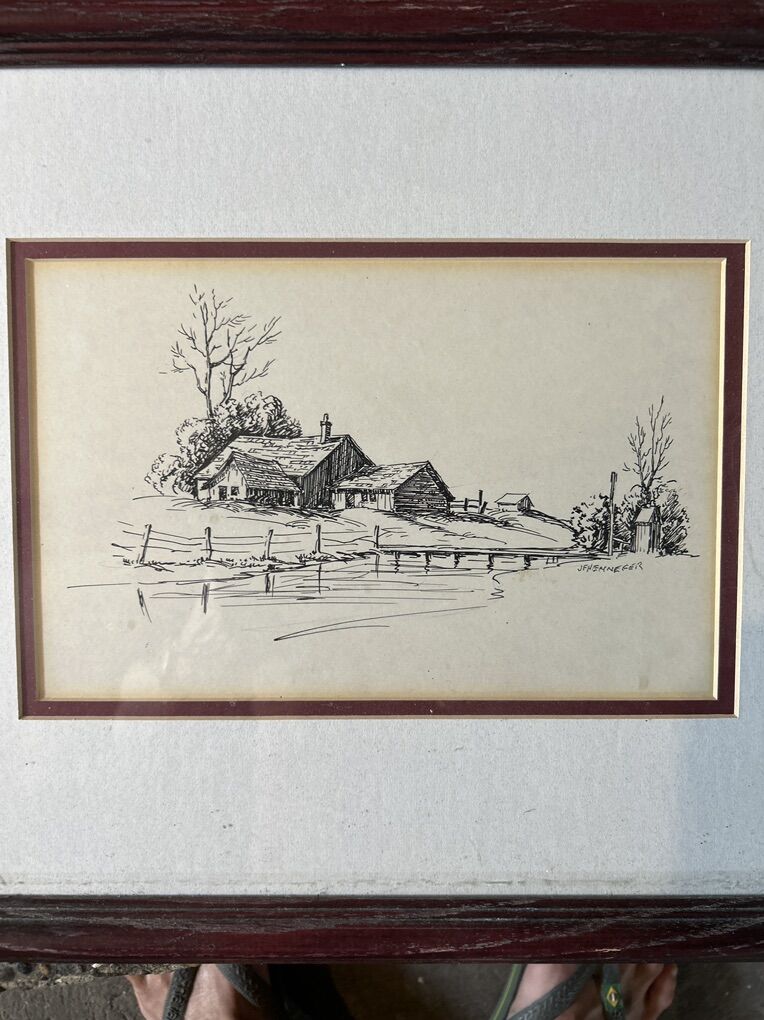 Set of 2 Two Pen and Ink Drawing By Utah Jay Fisher Hennefer Landscape Paintings