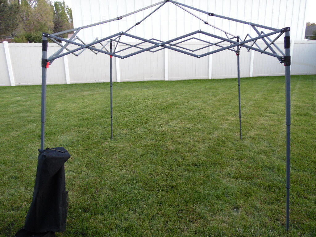 This is a brand new never used smaller sized portable canopy. When this was removed from the packaging it was noticed that one of the straps was ripped at the bottom. It can still be transported like a backpack but with only one strap. The frame was opened to make sure there was nothing wrong with it. The top was not put on because this is like new and did not want to unfold it . It has been inspected though and it is like brand new. This has never been and the reason for that is because one of the straps was broke. And because the one strap is broke this is being sold for $75.00. If interested please send a text to 801-836-0653. Will respond only to text to start communicating.