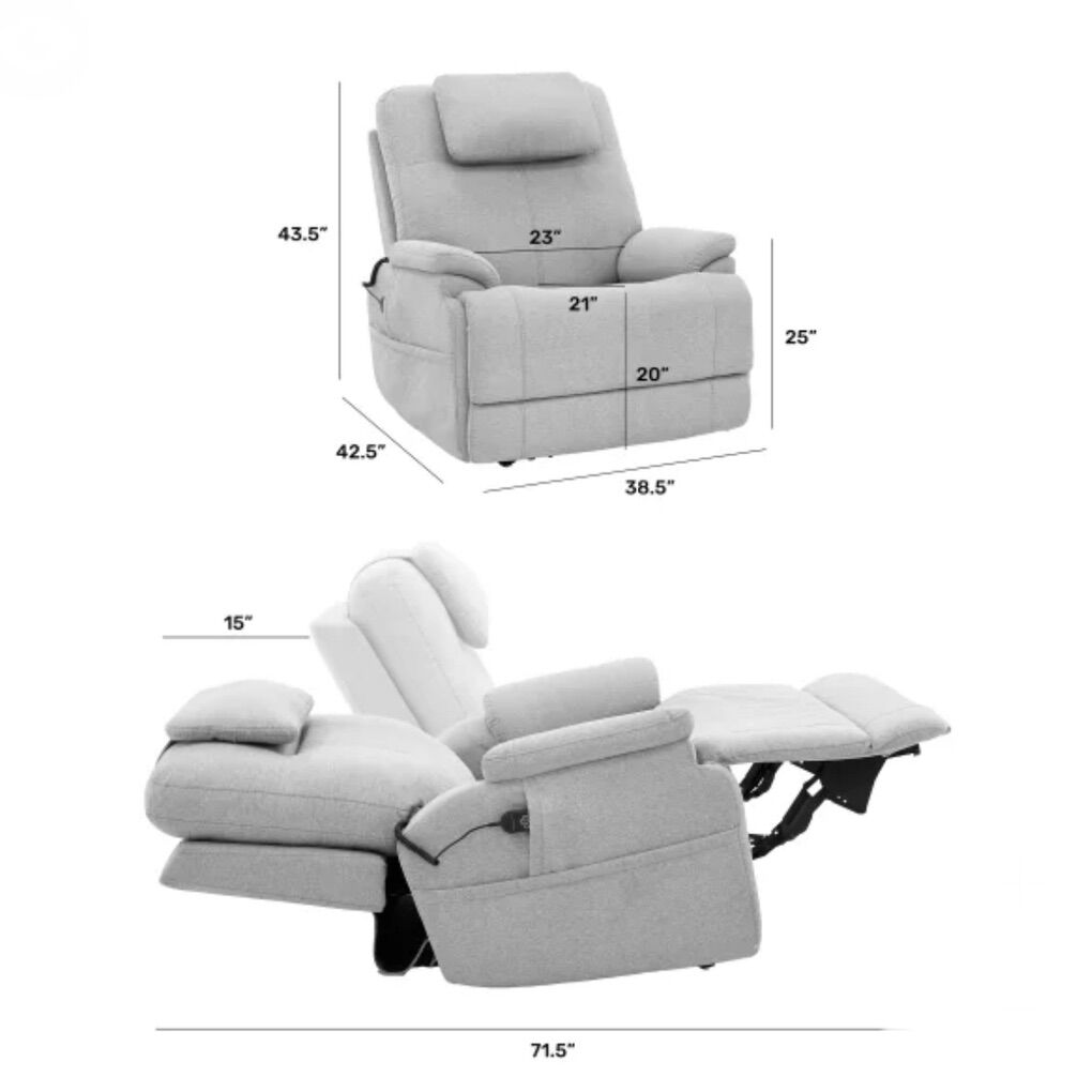 Arm TypePillow Top Arms Base TypePower Lift BrandFlexsteel Chair Dimensions: W x L x H42.5 in. x 38.5 in. x 43.5 in. Chair TypeRecliner Chair Weight180.8 lb. Chair Weight Capacity350 lb. ColorLight Gray