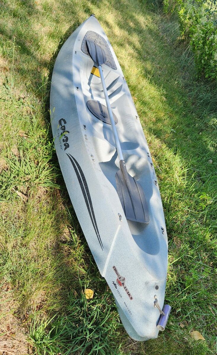 VenmoCobra explorer kayak in somewhat rough shape, but still really fun on the water. It will take on a little bit of water after a couple hours but I think it's just the seals on the hatches. Some of the hook points behind the seat are broken as seen in photos.