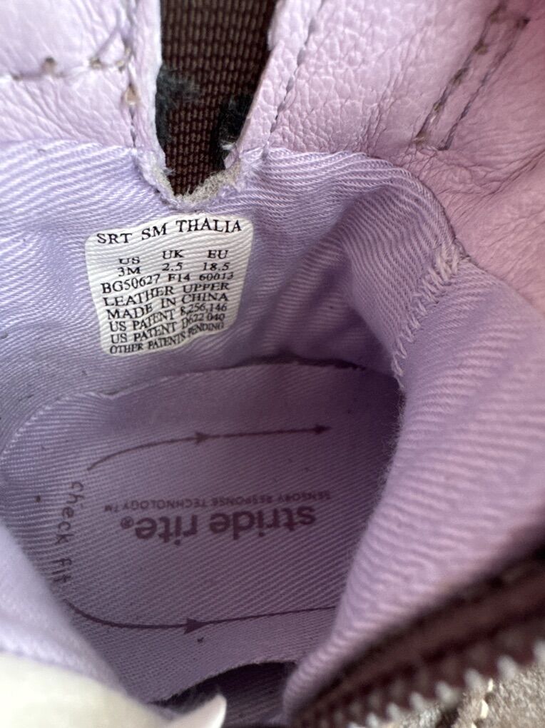 PayPalStride Rite Thalia New without box, never worn. Brown leather, purple trim, side zipper. Sz 3M Pet-free, smoke free home.