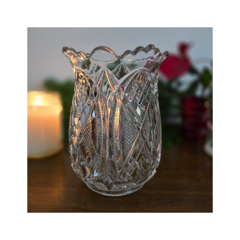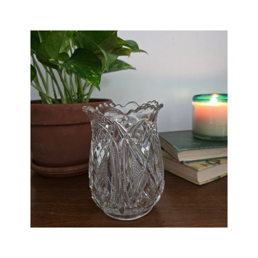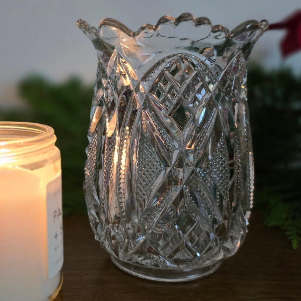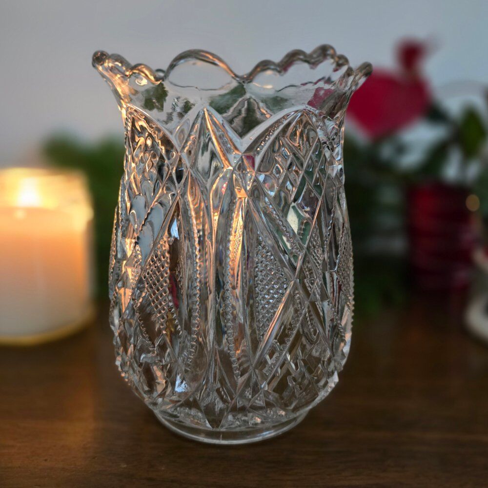 Period and Style: This vase belongs to the American Brilliant Period, known for its intricate and deep cut glass designs, often featuring patterns like hobstars, fans, and diamonds.