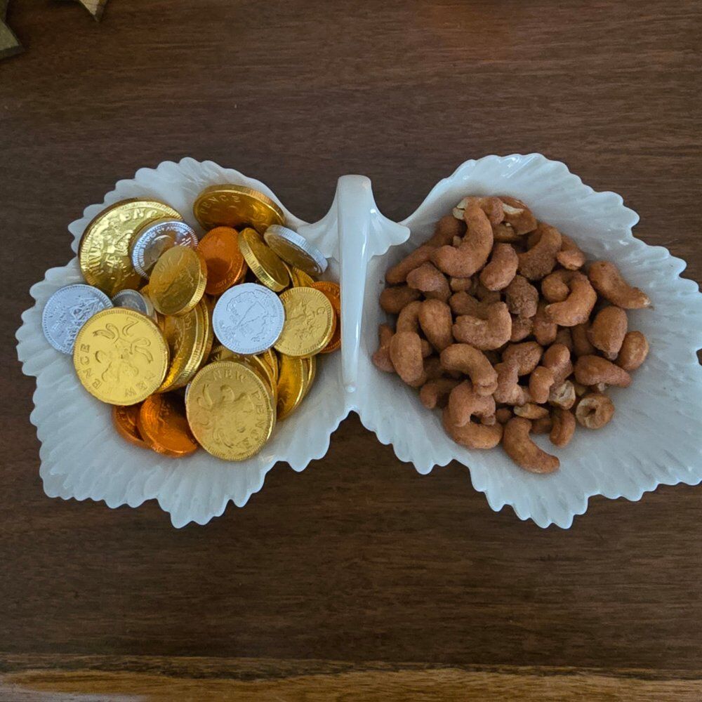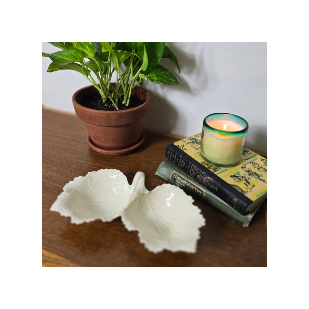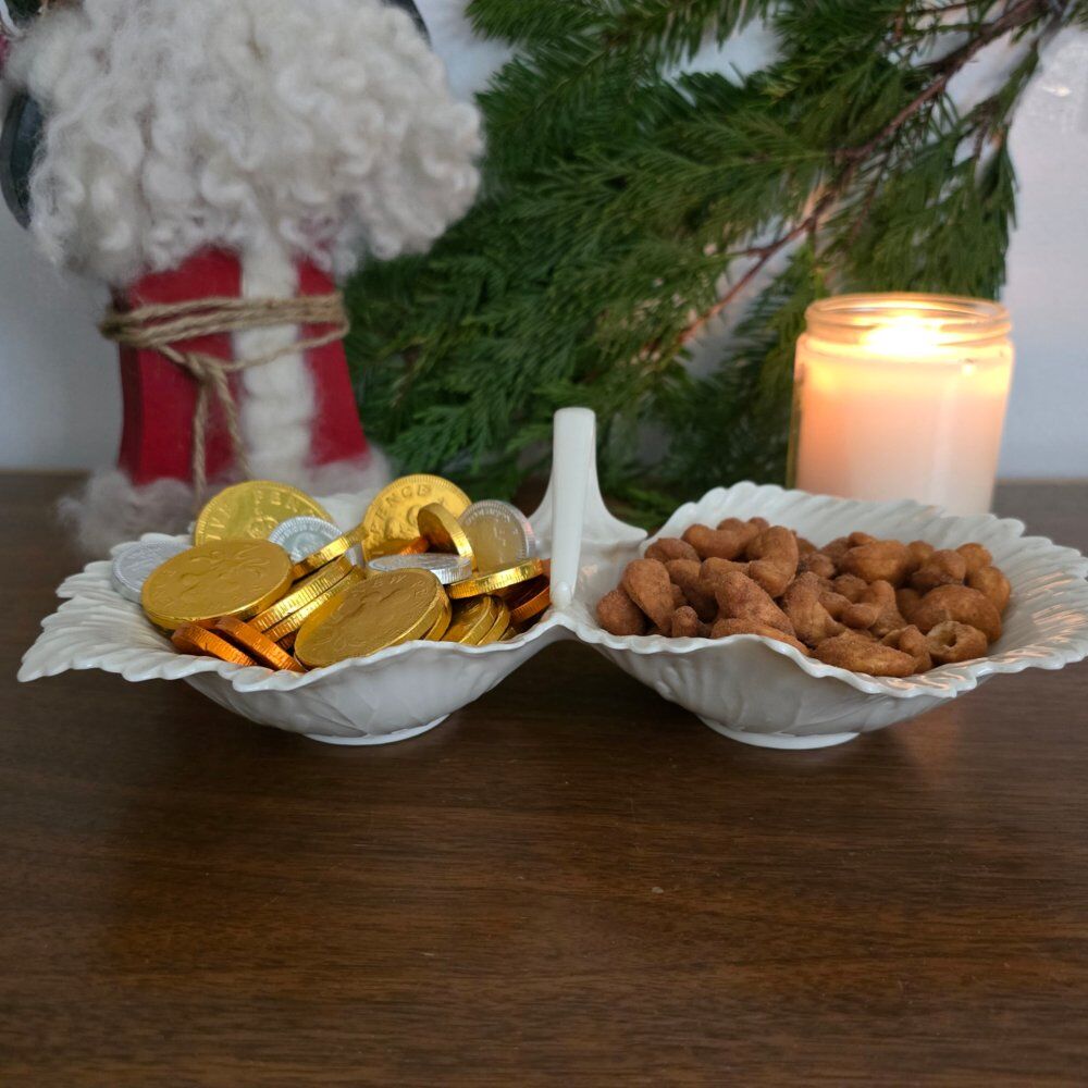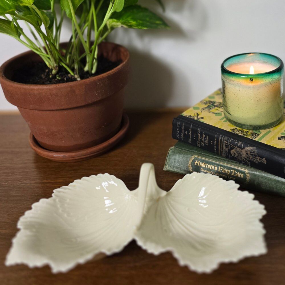 VenmoVintage Lenox ceramic double leaf candy/condiment dish in cream. Excellent used condition.