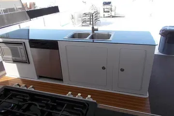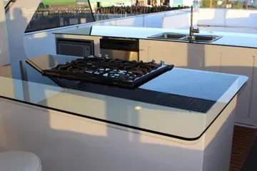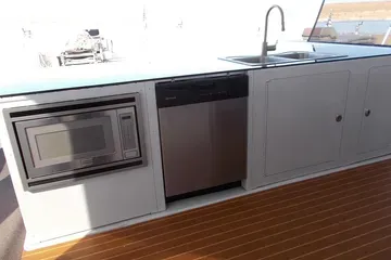 Designed for extended trips and large groups, the galley is fully stocked and thoughtfully laid out.
