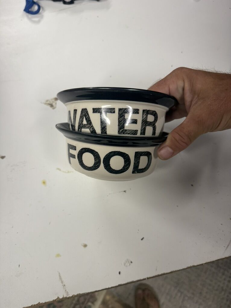 ZelleE collar Leash 25 foot outdoor teather Food and water dish Slow feeder bowl