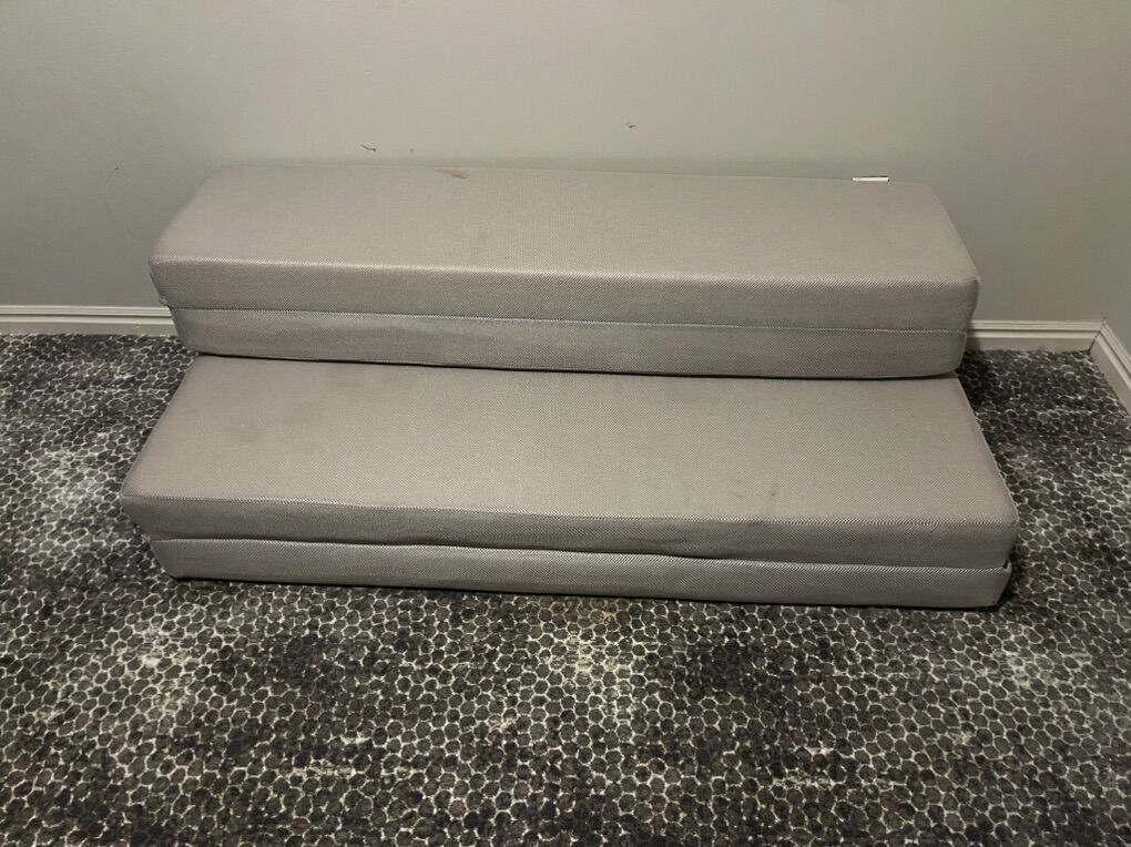 VenmoTri folding 4 inch mattress/ couch. Hardly used, mostly just moved around, the spots on it are just from moving around. The measurements are in the photos. Cash or Venmo only. Thanks