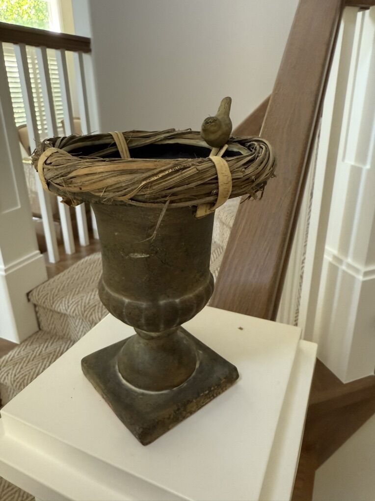 VenmoSmall Bird Nest Vase Made of composite material to appear like weathered concrete. 6 1/2” tall x 5” round