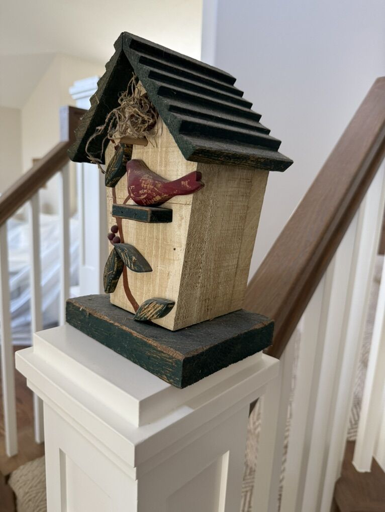 VenmoGreen, cream and mauve wood bird house.