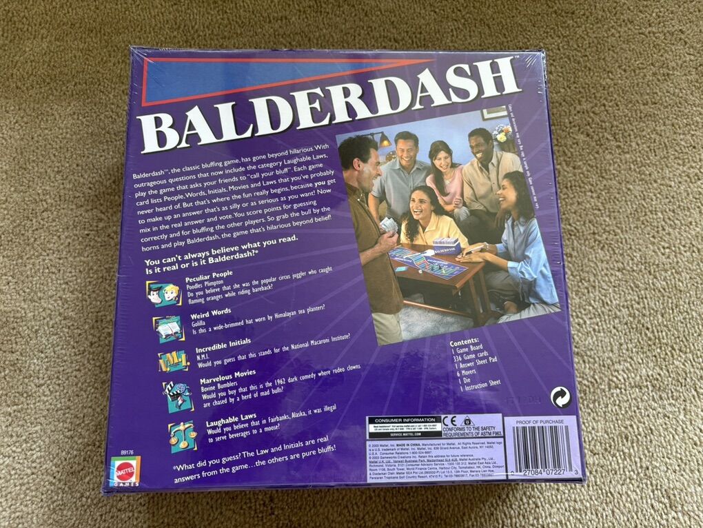 NEW (sealed in plastic) Balderdash: The classic bluffing game. Mattel, 2003. Age 12+, 2+ players. New, unopened condition. Text only. Cash or Venmo.