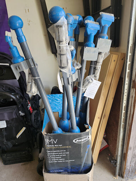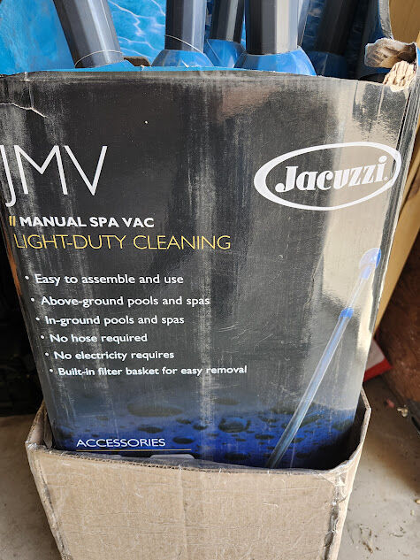 New Jacuzzi JMV Manual Spa Vacuum For Spas/Hot Tubs. These are brand new, but they are a little dusty and scratched up from shipping and storing them. Each vac comes with an extra filter. I have 6 available. Asking $10 each. Cash Only. Located in Riverdale. Pick up only. PRODUCT DESCRIPTION: The Spa-Vac combines two tools into one, a manual brush to sweep, and a vacuum that filters water to remove particles. The operation is simple, as you sweep simply pull up on the pole and water will be passed through an internal one-way filter. When the Spa-Vac is full, just push down and the water will pass through a second channel and back into your spa. The Jacuzzi JMV Spa-Vac is the new "must have tool" for any spa owner.