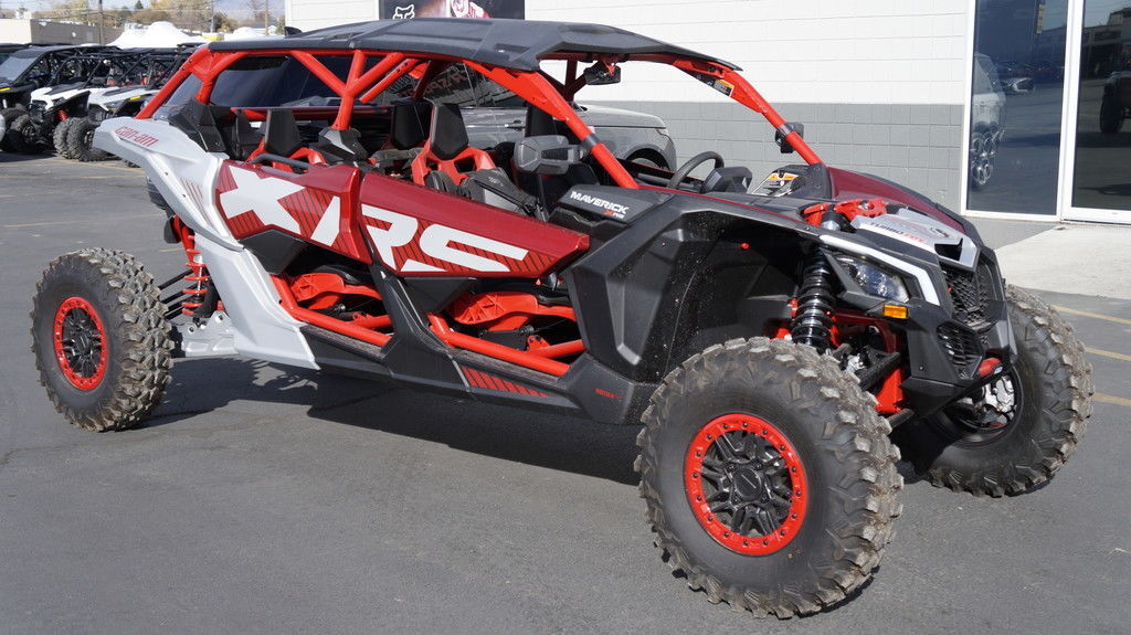PROVOPRICE INCLUDES STREET KIT 2025 Can-Am® Maverick X3 Max RS Turbo RR Fiery Red & Hyper Silver WIDE & WIDE OPEN. Invite 3 passengers to live the winning spirit of the vehicle which won the Dakar. And Baja. And Vegas to Reno. And…what are you waiting for? Features may include: Innovative Suspension Setup Arched double A-Arm / Torsional Trailing-Arm X (TTX) With double A-Arm throughout the lineup, strength comes standard. All 72 in. wide models benefit from a Trophy-Truck inspired suspension design. Our X rc and X mr models also boast arched double A-arms for maximum ground clearance. This Clutch Changes Everything Performance, Reliability and Comfort The Can-Am Maverick X3 features the pDrive clutch. By using rollers instead of sliders to limit wear and tear, it’s a breakthrough in reliability and performance. This clutch offers 30% more shifting amplitude for faster and smoother upshift and backshift. Find the perfect RPM and great control at all times, and focus on riding—the pDrive has the rest covered. Strength Is Power Reinforced frame and A-arm protection Top engines, and customers, expect the strongest platforms that don’t back down. Here comes an ultra-efficient and lightweight chassis that's bulletproof to any riding style. We’re not talking gravel. Bound over boulders, trounce through dunes without a care in the rugged, craggy world. Wheels & Tires High-performance wheels and tires Equipped to go the distance and get the most from the Maverick X3, anywhere. Each Maverick X3 package gets a unique setup, from staggered 30 in. ITP Cryptid† mud-ready tires, to the legendary 32 in. Maxxis Carnivore† tires with beadlock wheels. Ergo-Lok cockpit and low seating Sit on the edge of innovation Welcome to your office. Elevate your off-road experience with a lower seating position, advanced cockpit, and enhanced protection. Designed for all-day comfort with well-placed controls, and 4-way adjustible bucket seats and available 4-point harnesses. Continuously Variable Transmission pDrive primary For near-instantaneous response and reliable all-terrain performance, the Maverick X3 uses the latest pDrive primary and Quick Response System X (QRS-X) CVT technology with high airflow and an acoustic treatment for a drive like no other side-by-side. Upgraded high-power Magneto Accessory ready The power you need, everywhere you need it. We've added a 850W Magneto to handle the electrical needs of both official Can-Am and after purchase upgrades such as audio equipment, auxiliary lighting, 12V accessories, a winch, and more. Step it up Vehicle accessories Quickly change your Maverick to fit your riding style and terrain. Choose from a range of accessories, like LED lights or a winch, to ride like a pro on any kind of adventure.